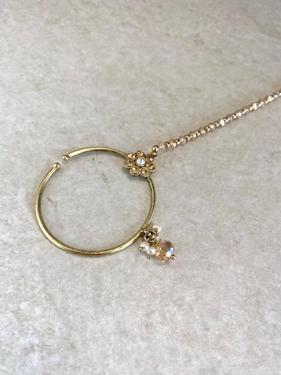 Antique gold nose ring with gold/clear stonework and bead details. This nose ring is slide type for those with no piercing and designed for left hand side.