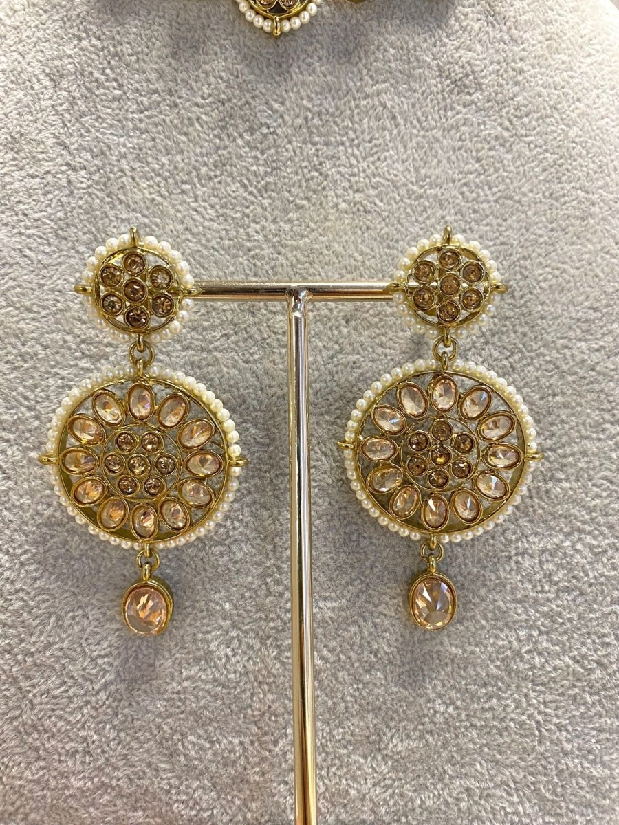 SLIGHTLY IMPERFECT: Antique Gold Necklace Set - Champagne/Pearl