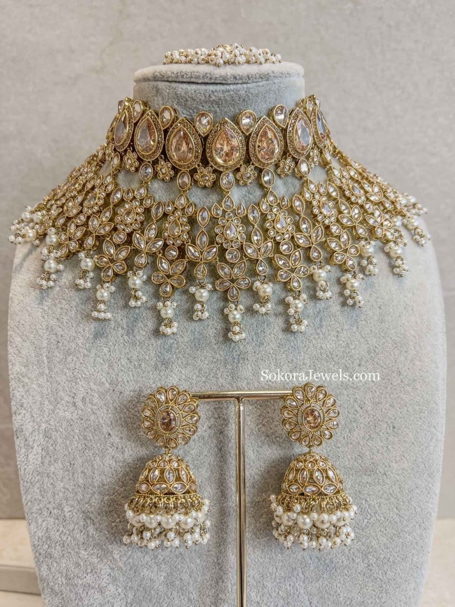 Maheen Bridal Choker set - White - SOKORA JEWELSMaheen Bridal Choker set - White