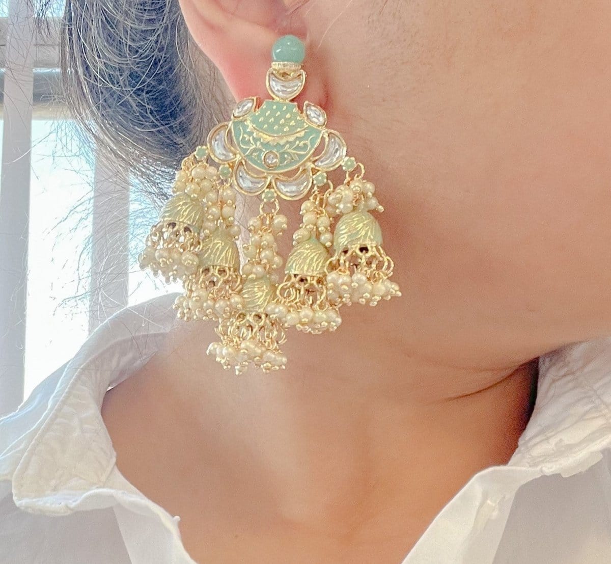 Triple Jhumka Large Chandbali Earrings - SOKORA JEWELSTriple Jhumka Large Chandbali Earringsstuds and tops