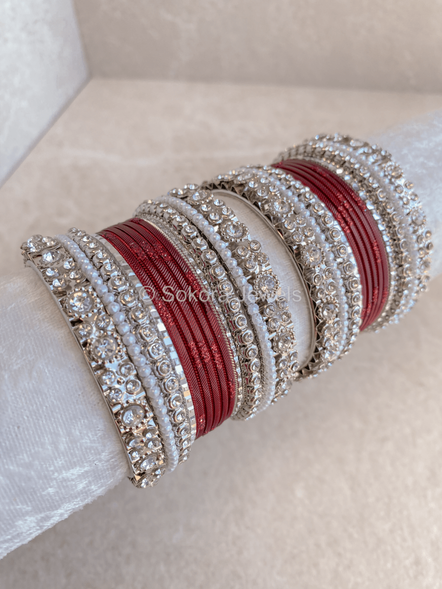 2 small half stacks of Silver bangles with clear stonework details and pretty coloured bangles. Choose from a wide range of colour options.