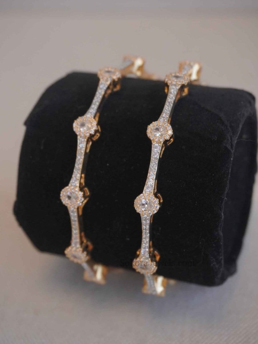 Pair of Intricate Gold and Silver Zircon Crystal bangles in a stunning unique design.