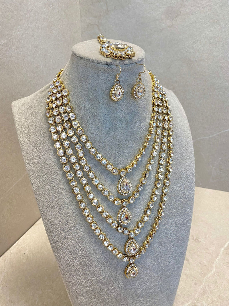 Meera Antique Gold+Clear Long Mala - SOKORA JEWELSMeera Antique Gold+Clear Long Mala