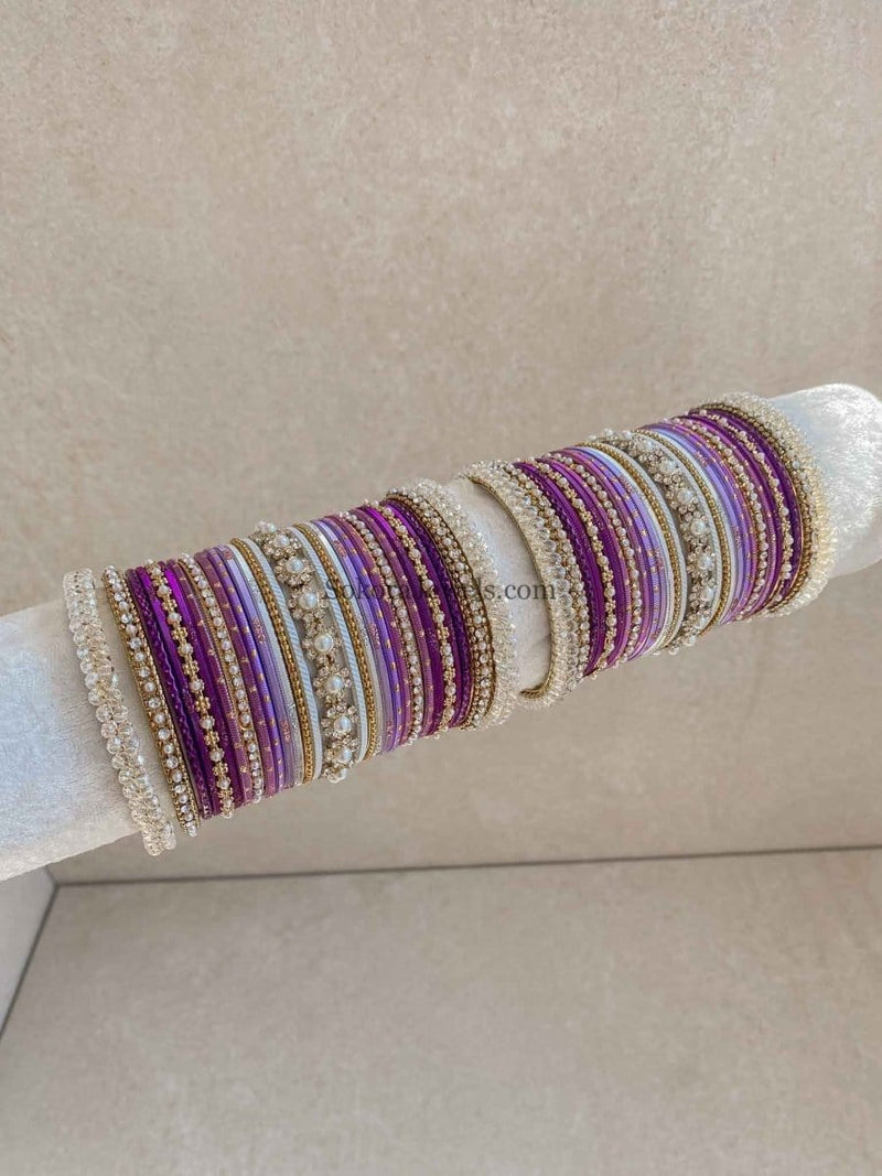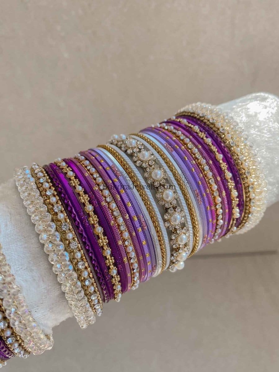 Thanjina Silver and Pink Bangles Stack - SOKORA JEWELSThanjina Silver and Pink Bangles StackBANGLES