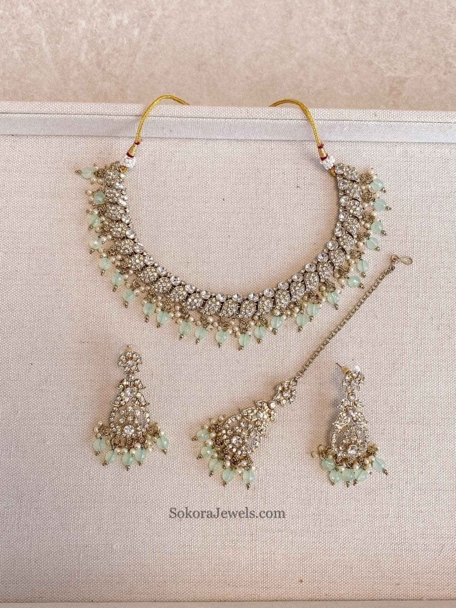 Pretty and Simple jewellery set that is no fuss and all Elegance!. Antique Gold polish, sparkling clear crystals with pretty bead work.