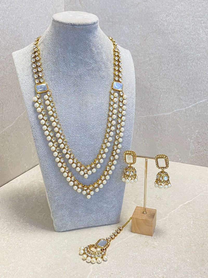 Uzma Bridal Necklace with Jhumka Earrings - Pearl - SOKORA JEWELSUzma Bridal Necklace with Jhumka Earrings - Pearlcustom