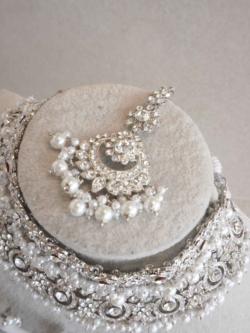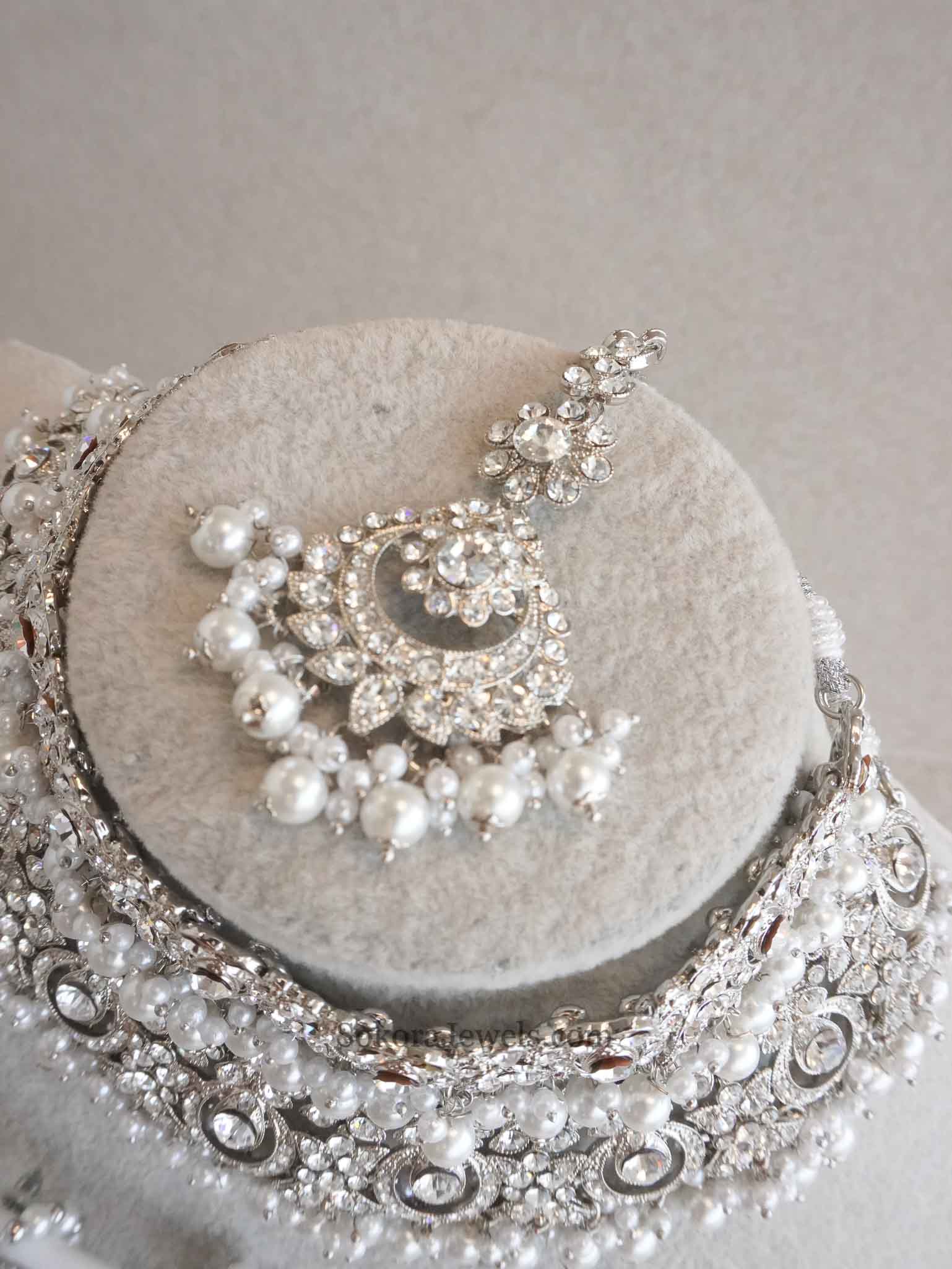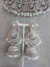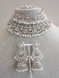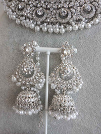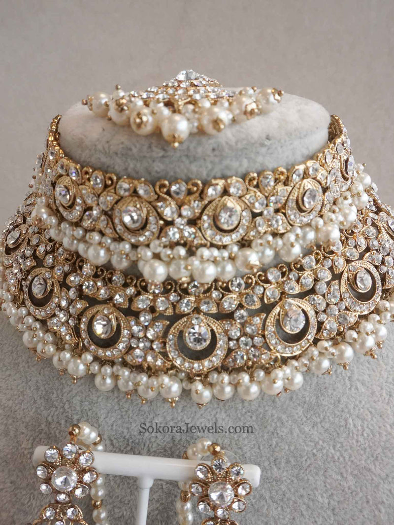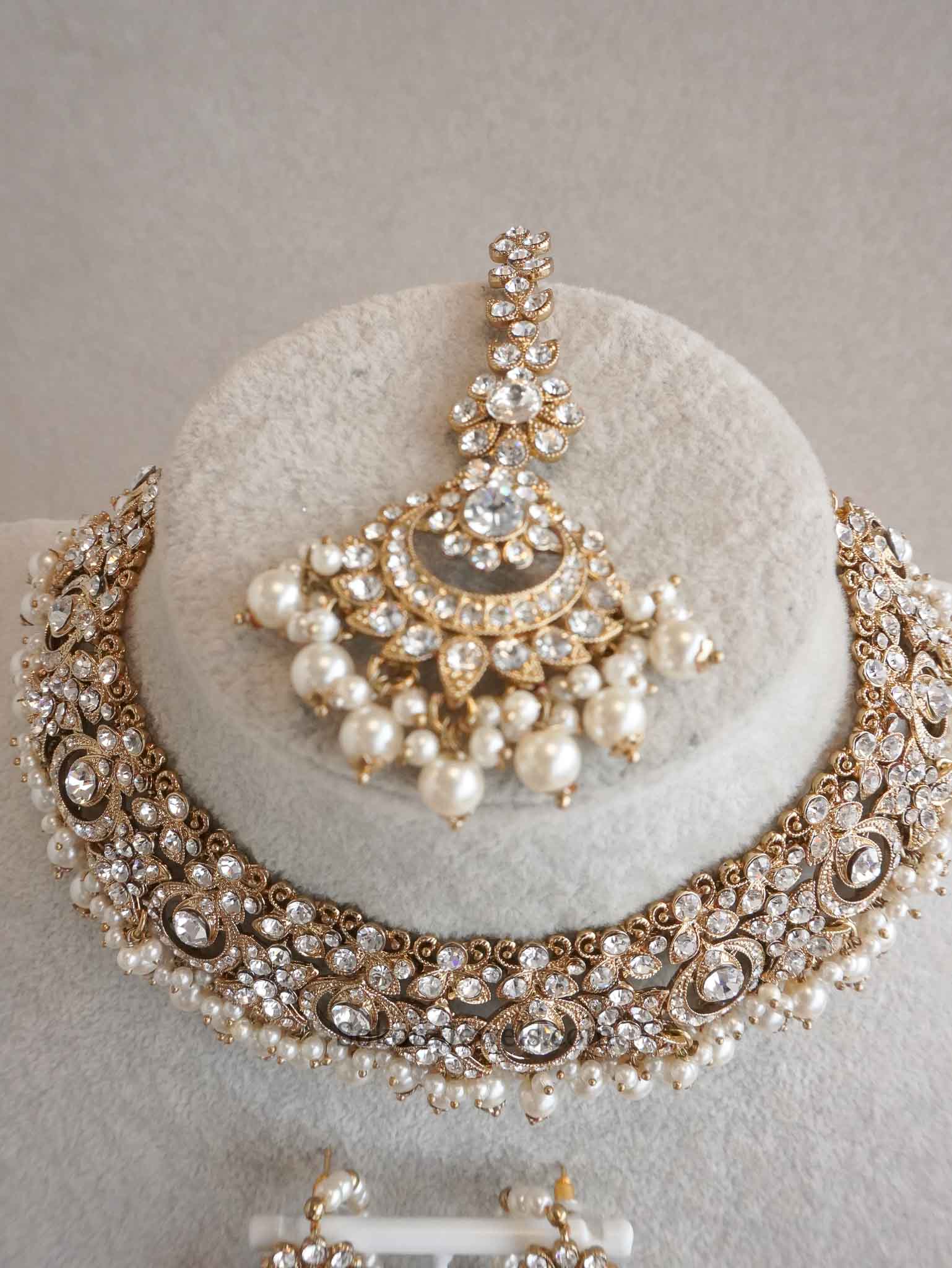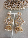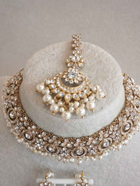 Adjustable to fit any neck Size - Set includes Top choker ( 1.5 inch length), Flat necklace (2 inch length) matching Earrings (3.5 inch length x 1.5 inch width) and Tikka (pendant part 2.5 inch length x 2 inch width)