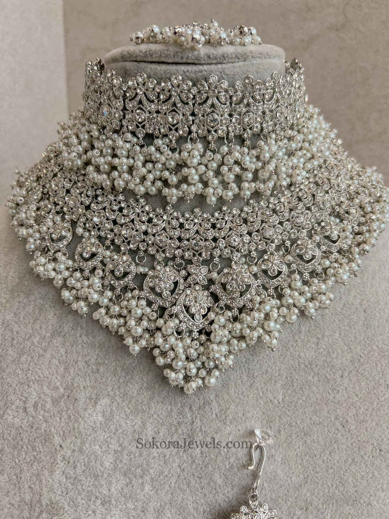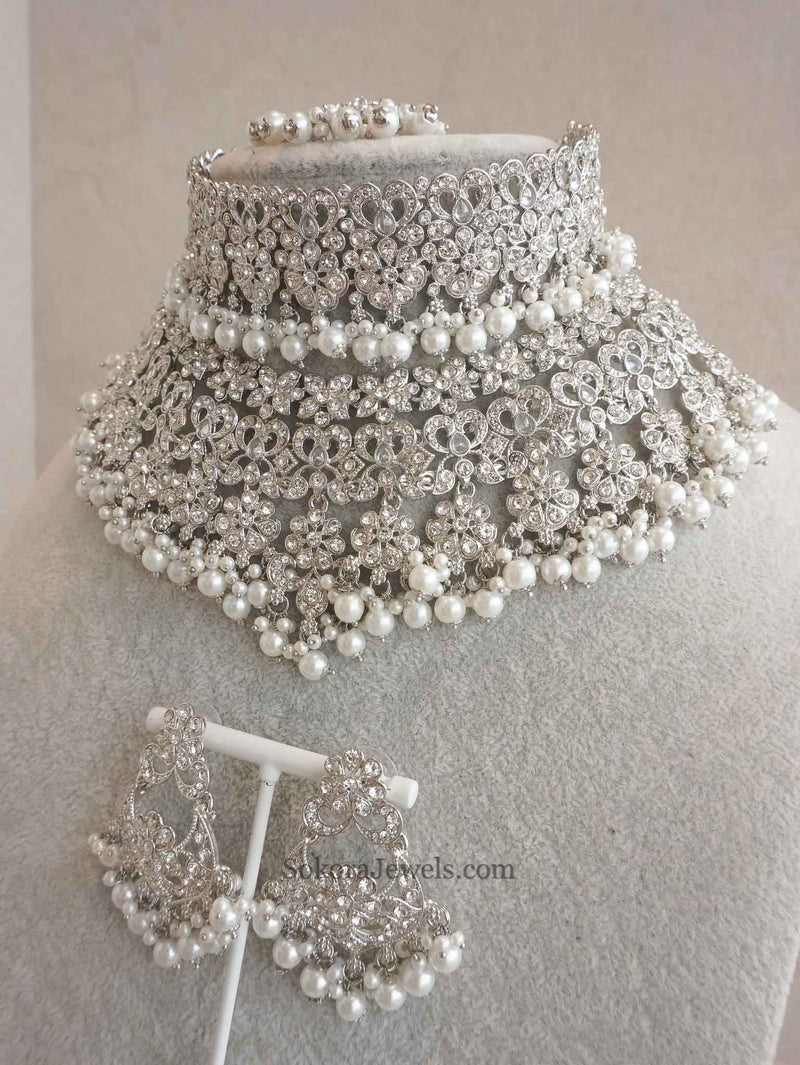 Tahia Bridal Choker Set - Silver