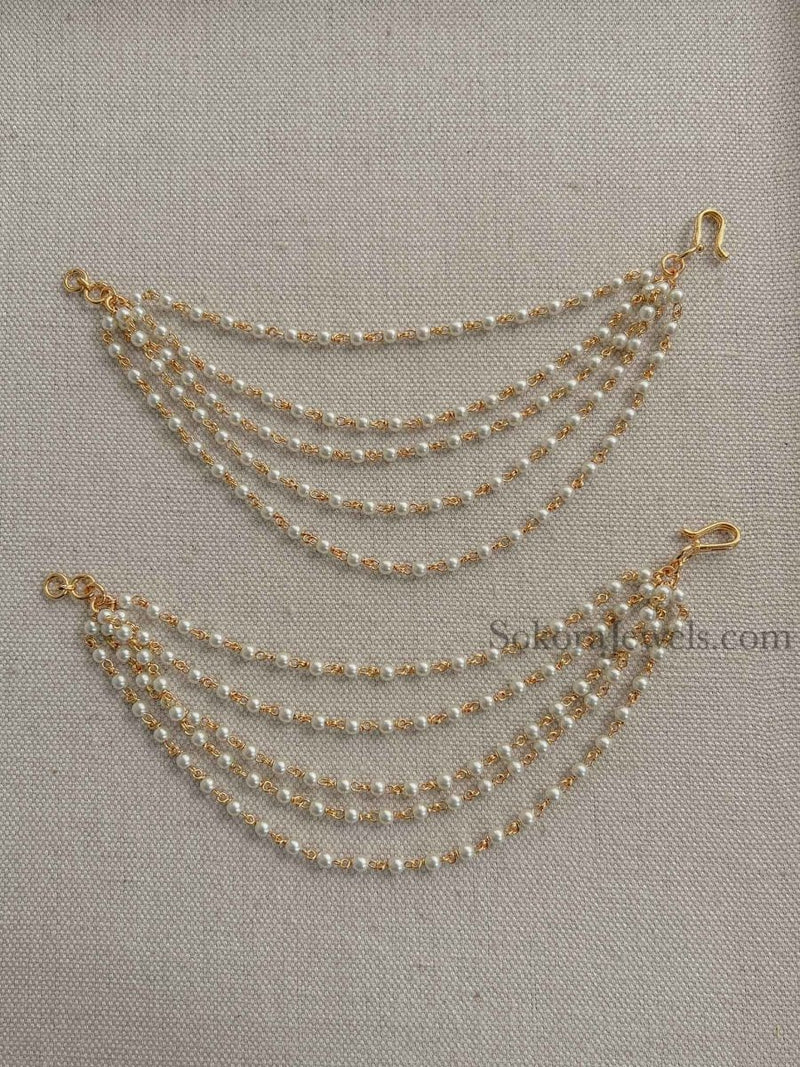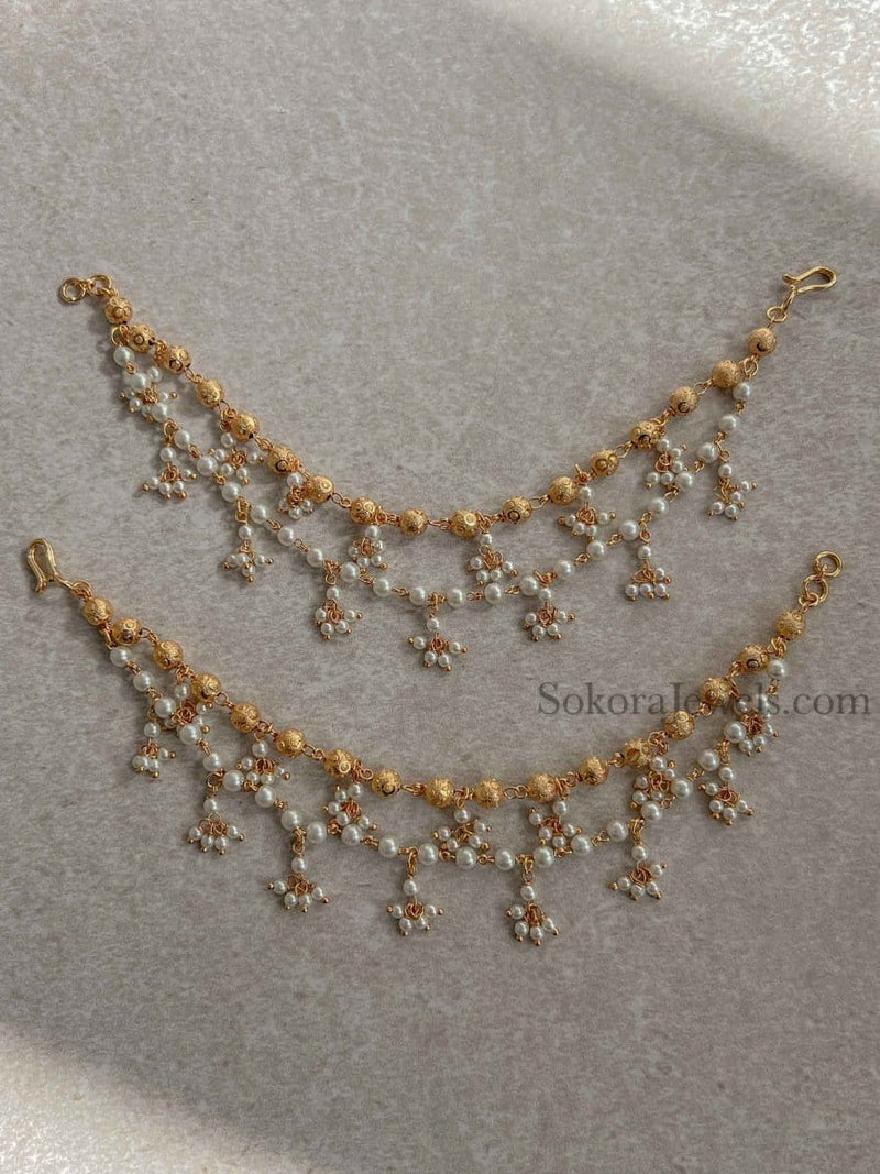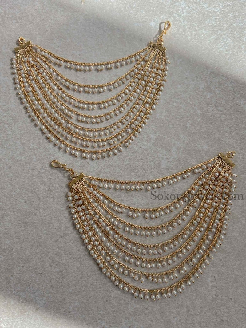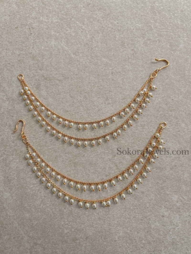2 Line Pearl and Antique Gold Earring Chains - SOKORA JEWELS2 Line Pearl and Antique Gold Earring ChainsEARRINGS