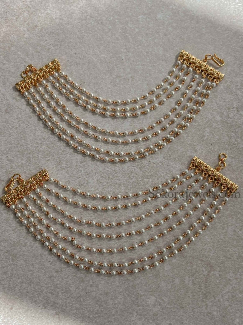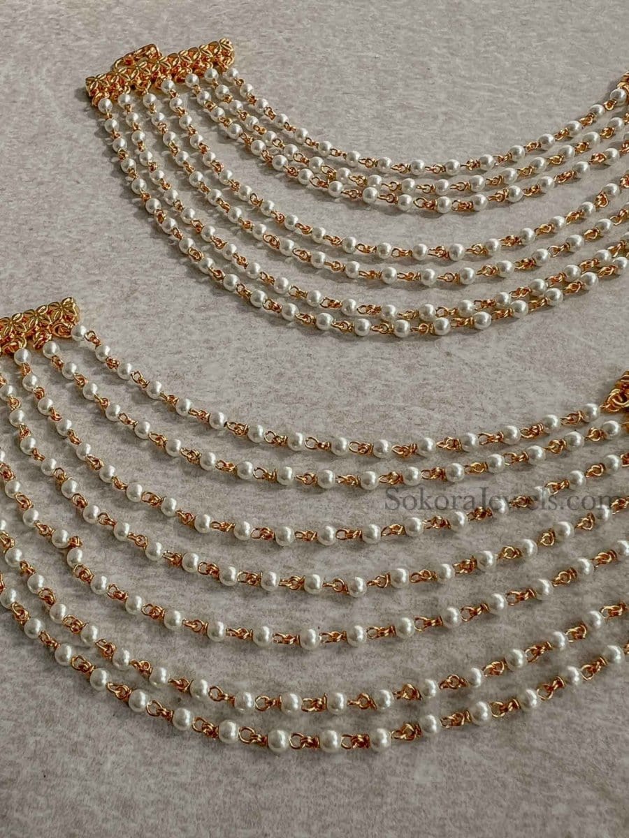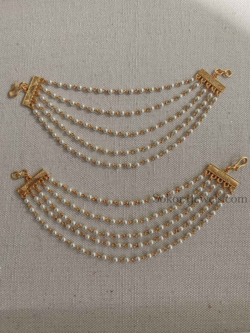 2 Line Pearl and Antique Gold Earring Chains - SOKORA JEWELS2 Line Pearl and Antique Gold Earring ChainsEARRINGS