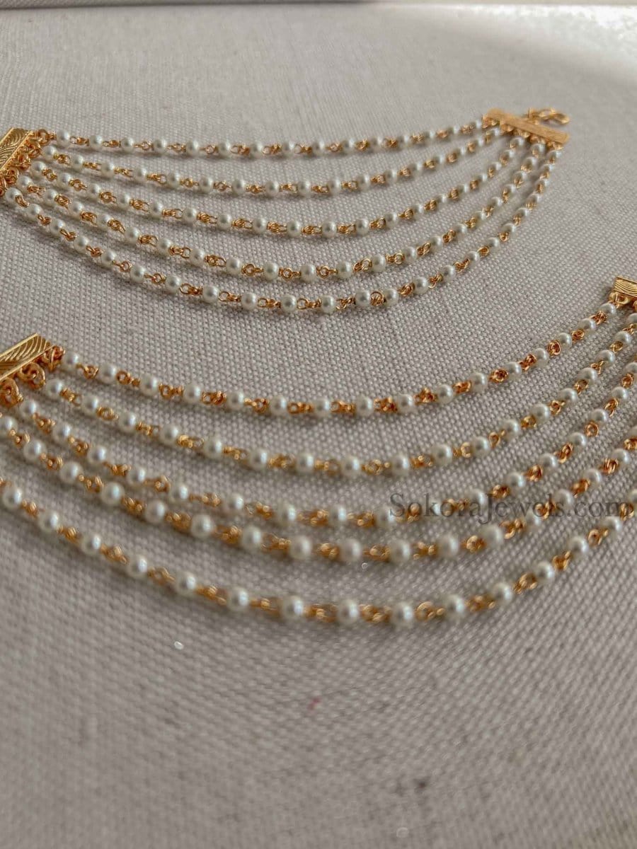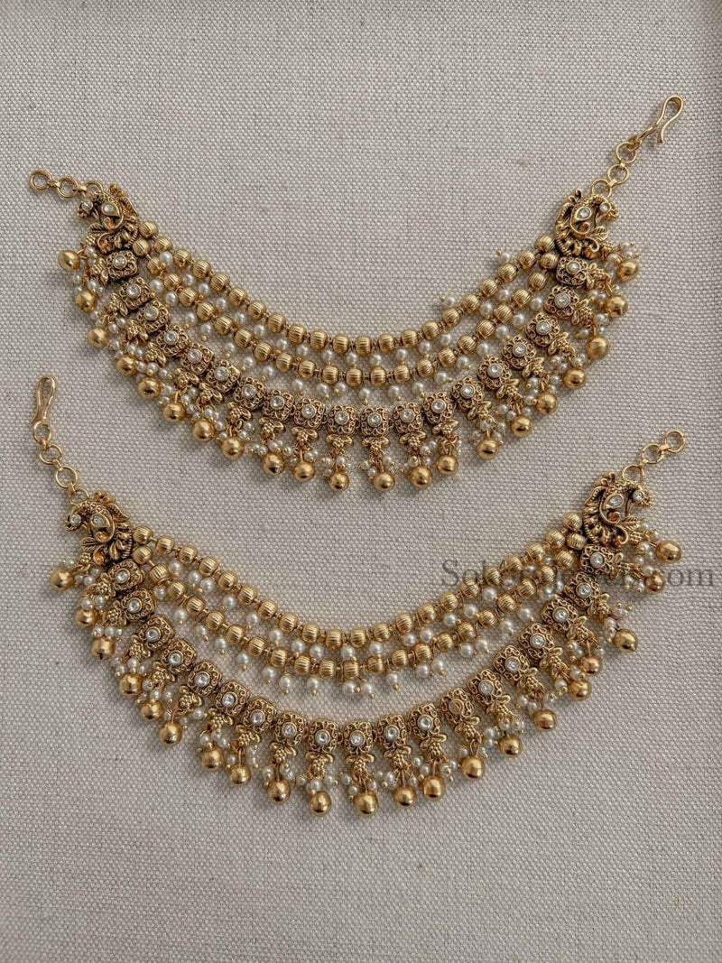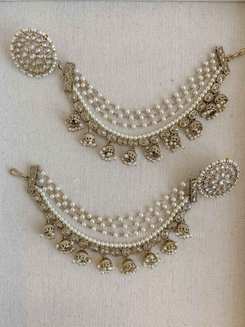 3 Line Pearl and Antique Gold Earring Chains - SOKORA JEWELS3 Line Pearl and Antique Gold Earring ChainsEARRINGS