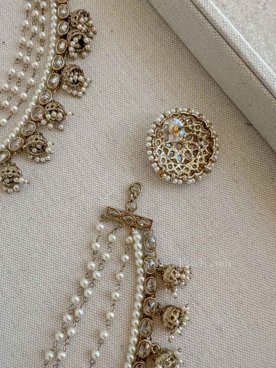 Mirrored Earrings and Tikka set - Pearl - SOKORA JEWELSMirrored Earrings and Tikka set - Pearl