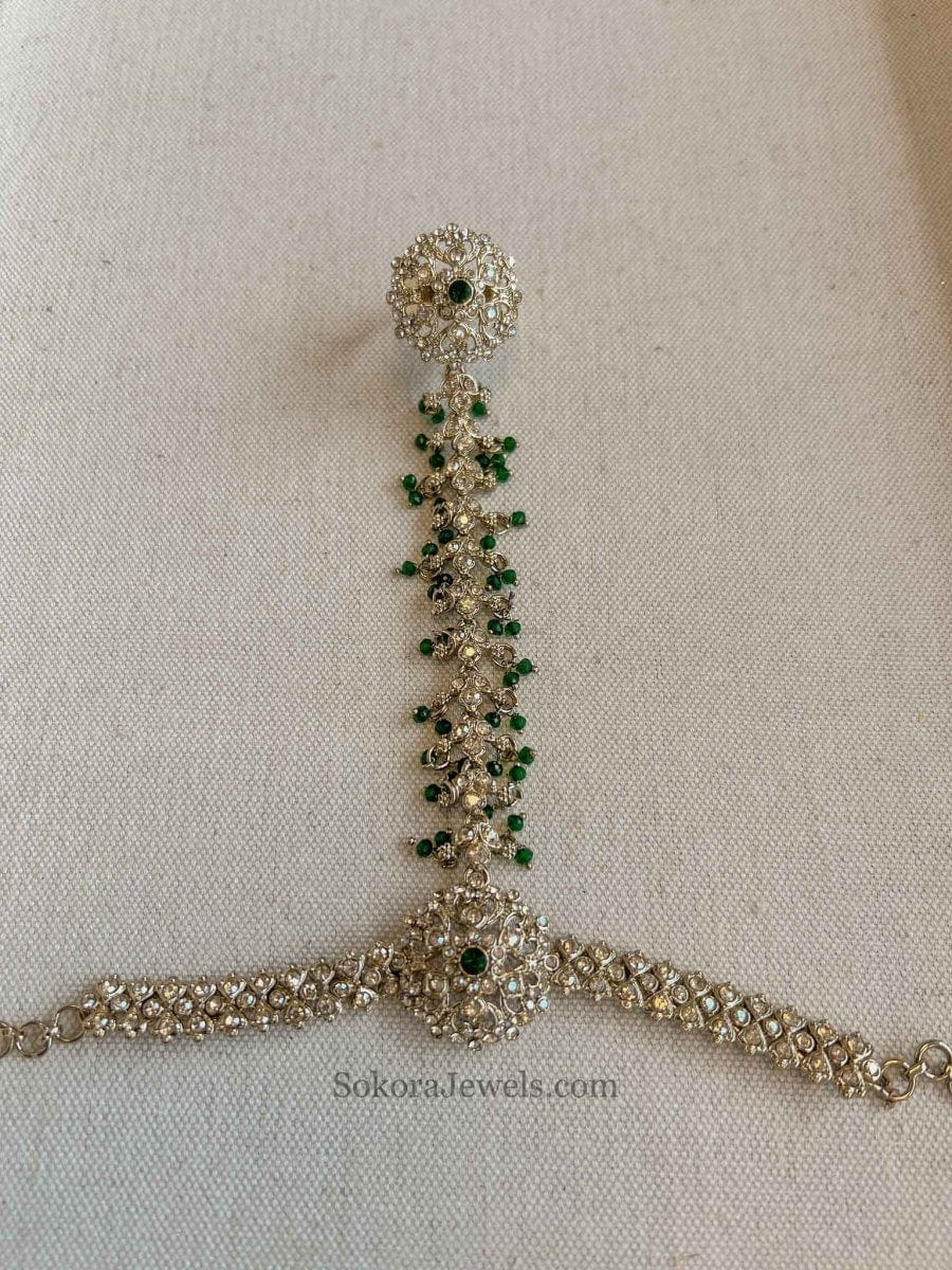 Kundan Hand Harness - Green - SOKORA JEWELSKundan Hand Harness - Green
