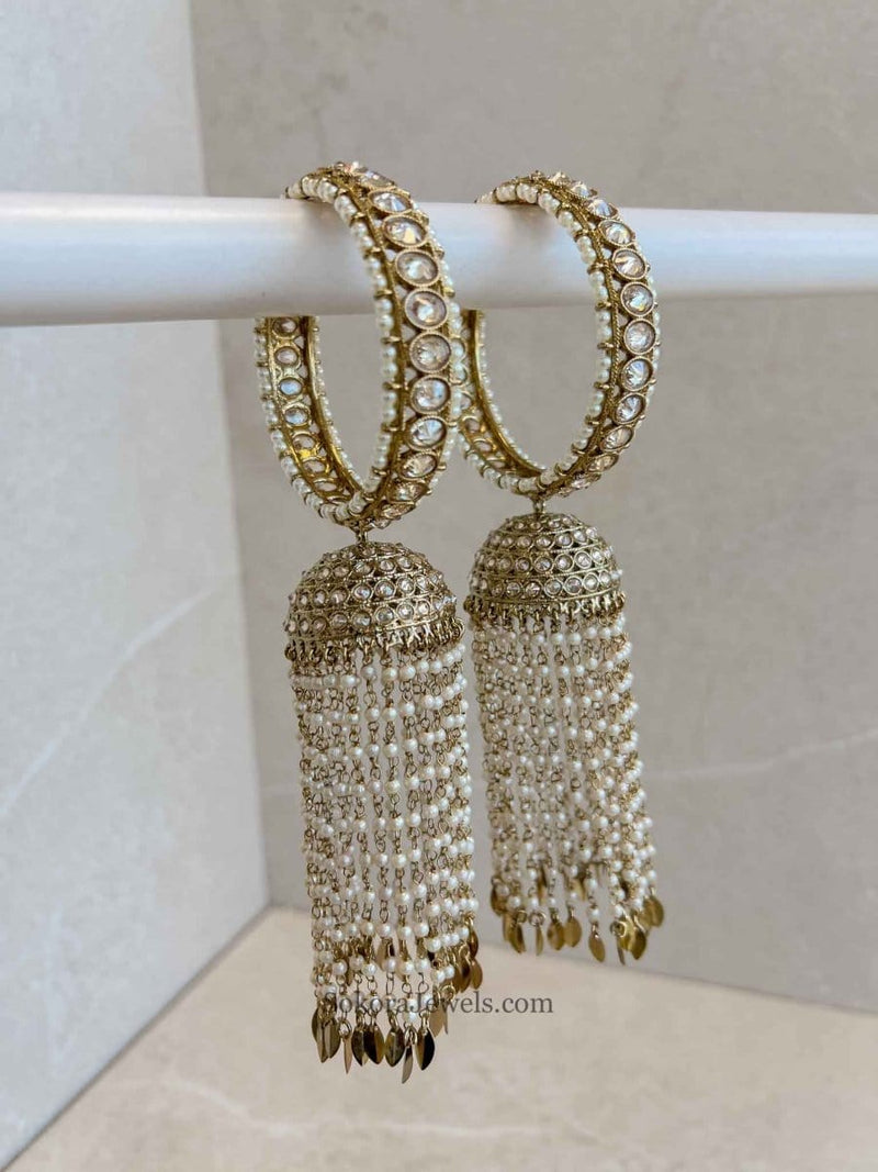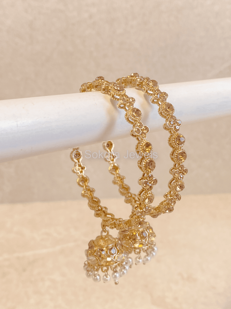 Enhance your style with our range of Statement Jhumka Bangles a perfect fusion of tradition and trend. If you wish for a more glam look, jhumka bangles are for you. Combine your stunning bangle stacks with these dangling Jhumka Bangles and create your own contemporary style. Embrace the beauty and make a statement with every sway.