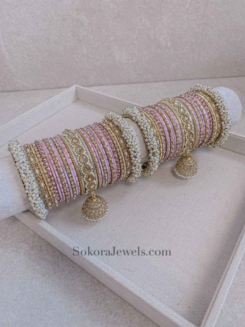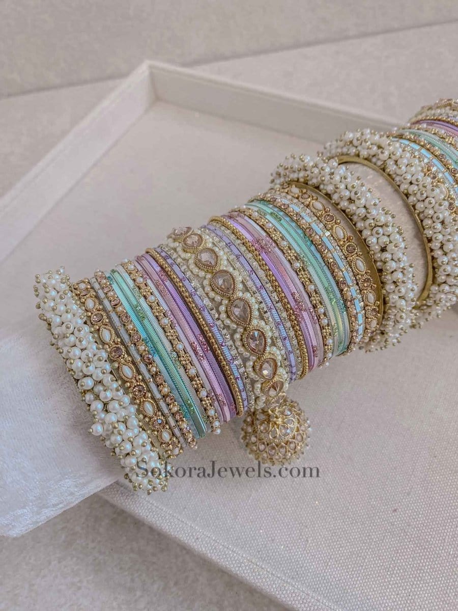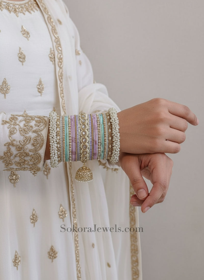 Meenaz Luxury Pearly Bangle Set - SOKORA JEWELSMeenaz Luxury Pearly Bangle SetBANGLES