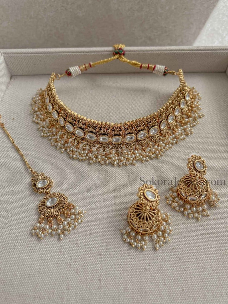 Kundan and Pearl Choker set - SOKORA JEWELSKundan and Pearl Choker setNECKLACE SETS