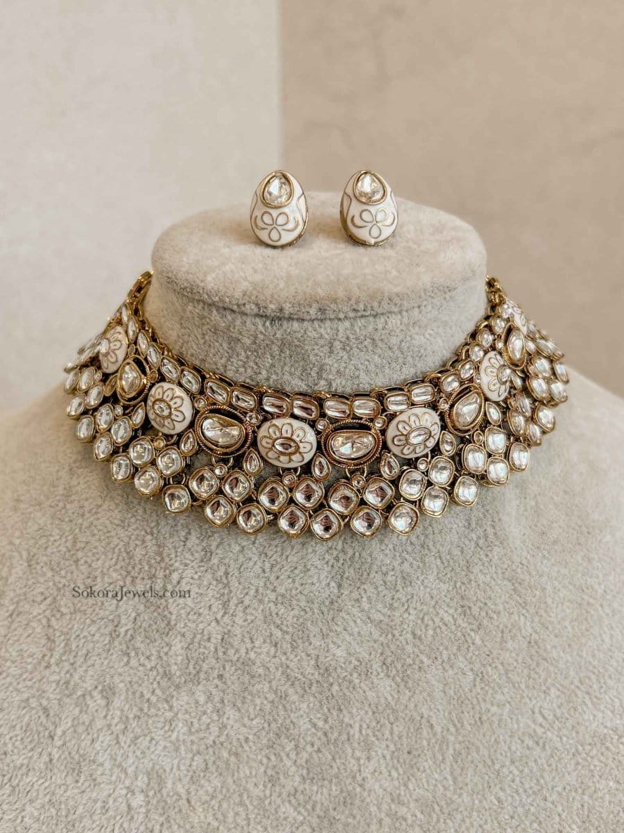 Meera Choker Set - White - SOKORA JEWELSMeera Choker Set - White