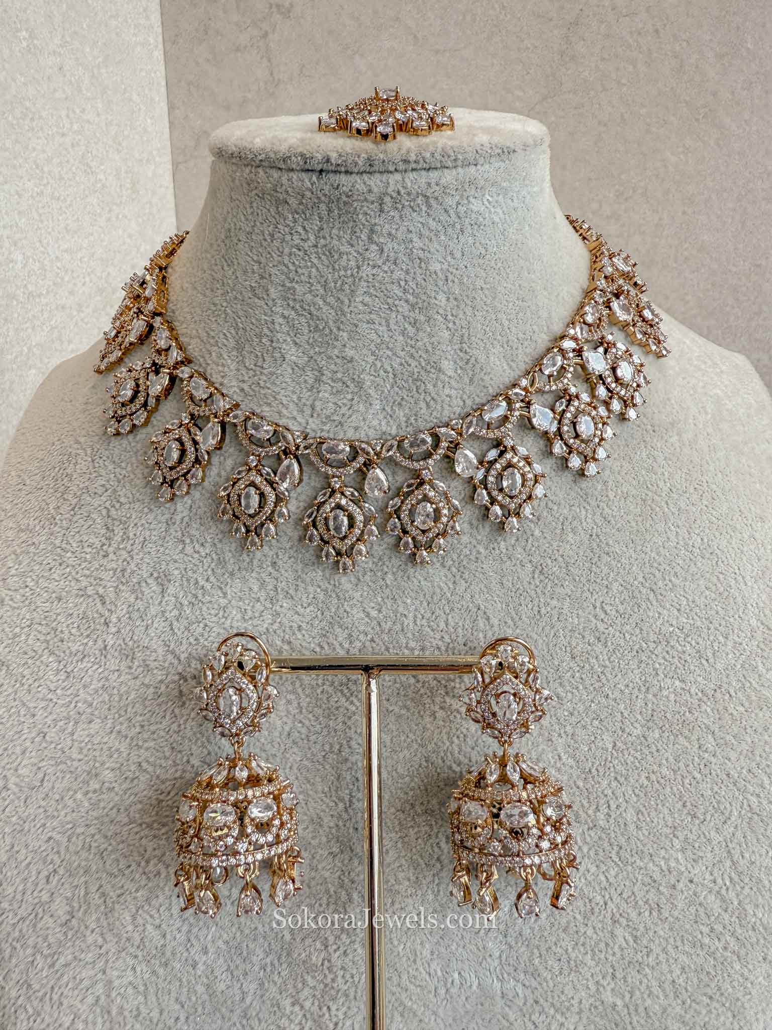 Clear Crystal set with American Diamonds on either a silver or antique gold base.