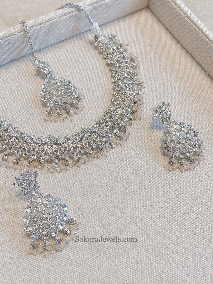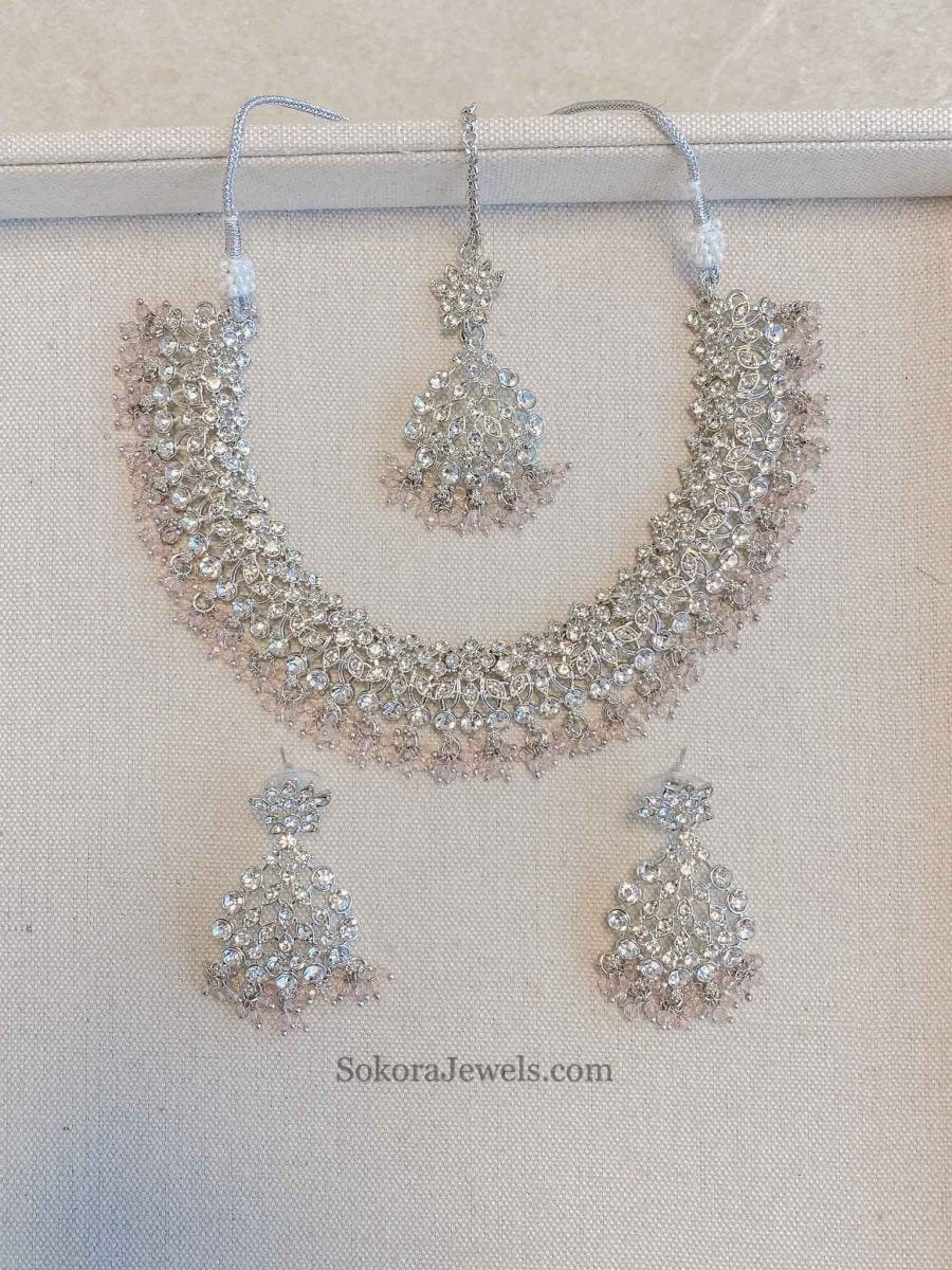Pretty and Simple jewellery set that is no fuss and all Elegance!. Silver polish, sparkling crystals with colourful bead work.