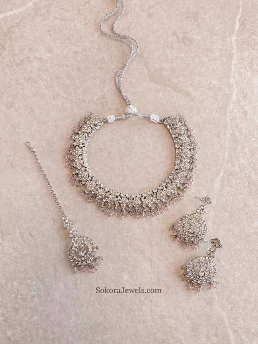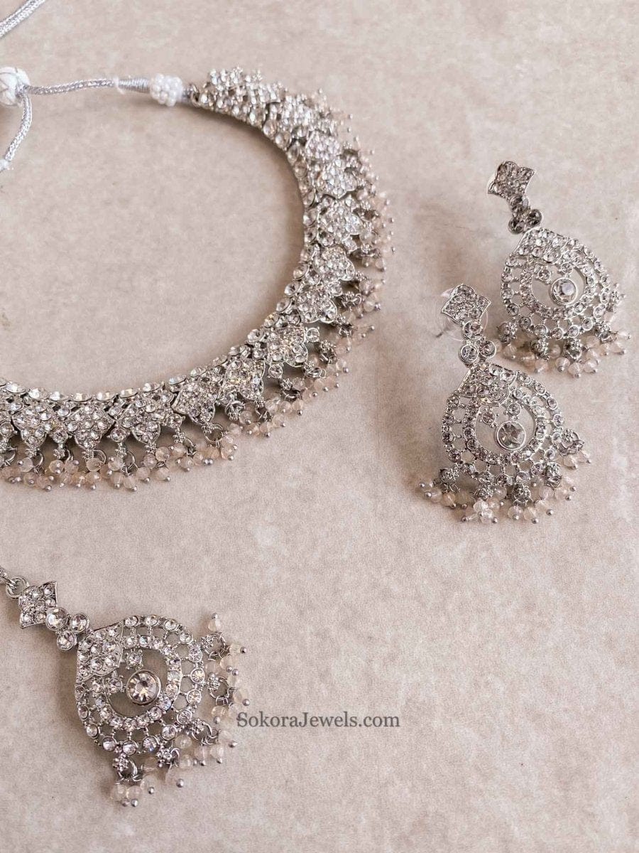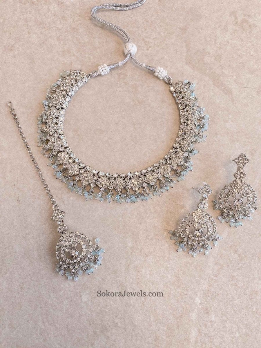 Pretty and Simple jewellery set that is no fuss and all Elegance!. Silver polish and sparkling clear crystals with colourful bead work.