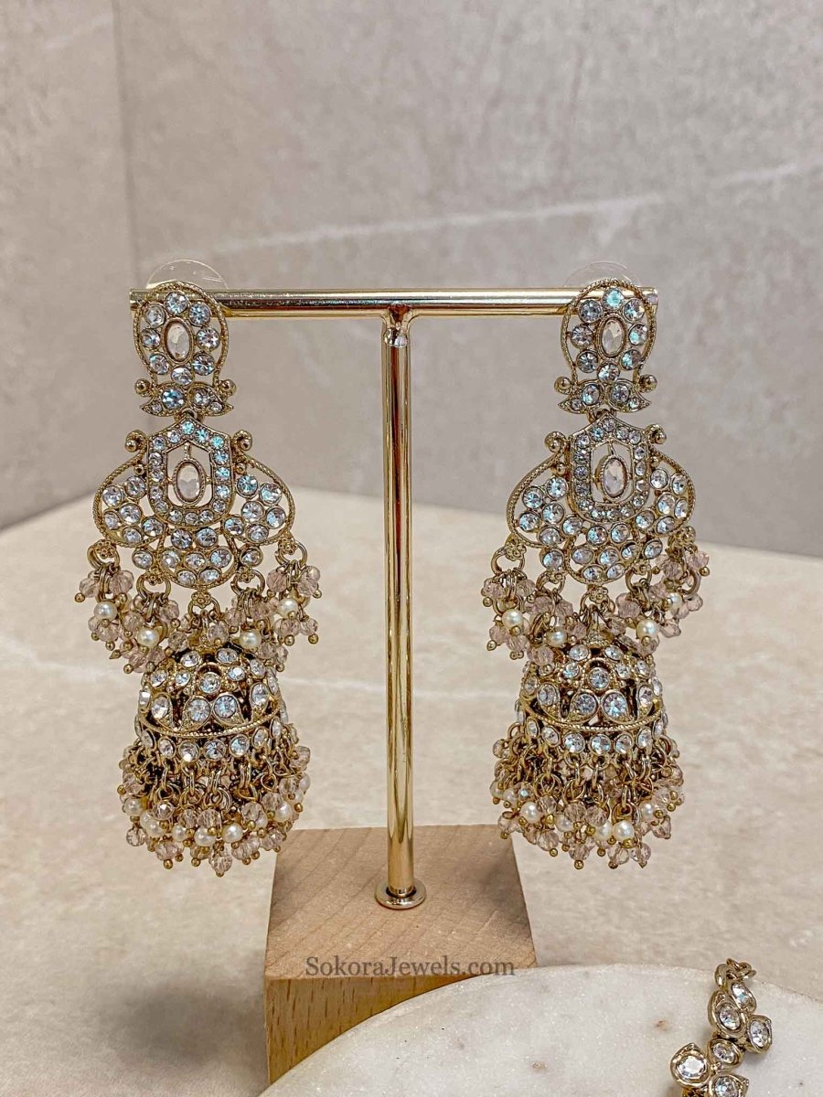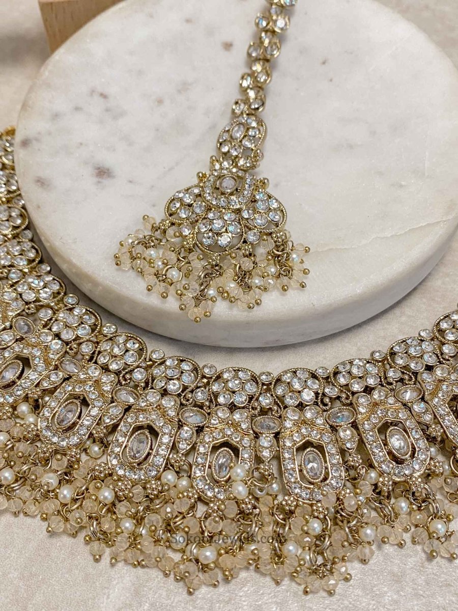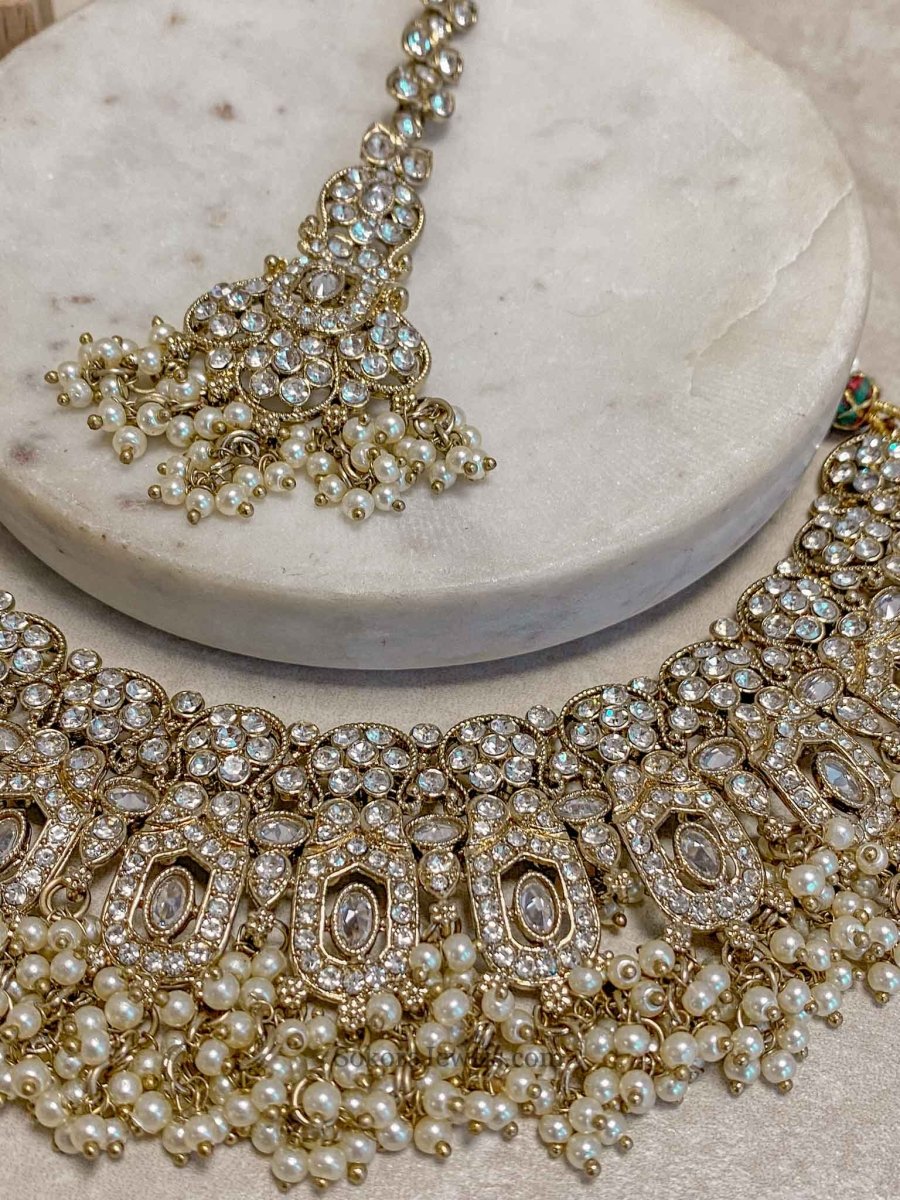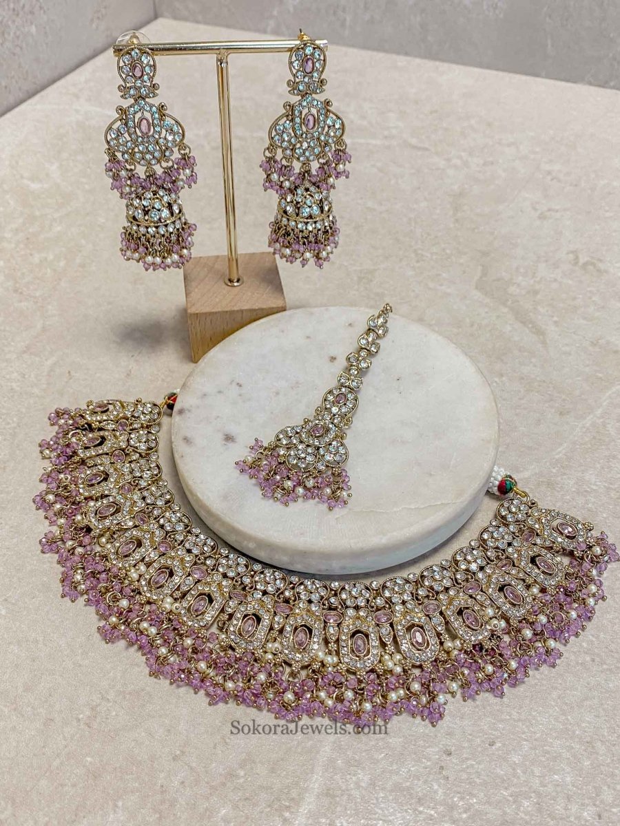 Adjustable to fit any neck Size - Set includes Flat necklace (2 inch length) matching Earrings (3.5 inch length x 1.5 inch width) and Tikka (pendant part 2.5 inch length x 2 inch width)
