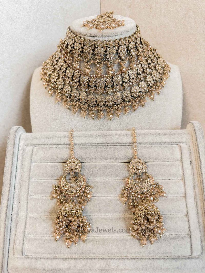 Uzma Bridal Necklace with Jhumka Earrings - Pearl - SOKORA JEWELSUzma Bridal Necklace with Jhumka Earrings - Pearlcustom