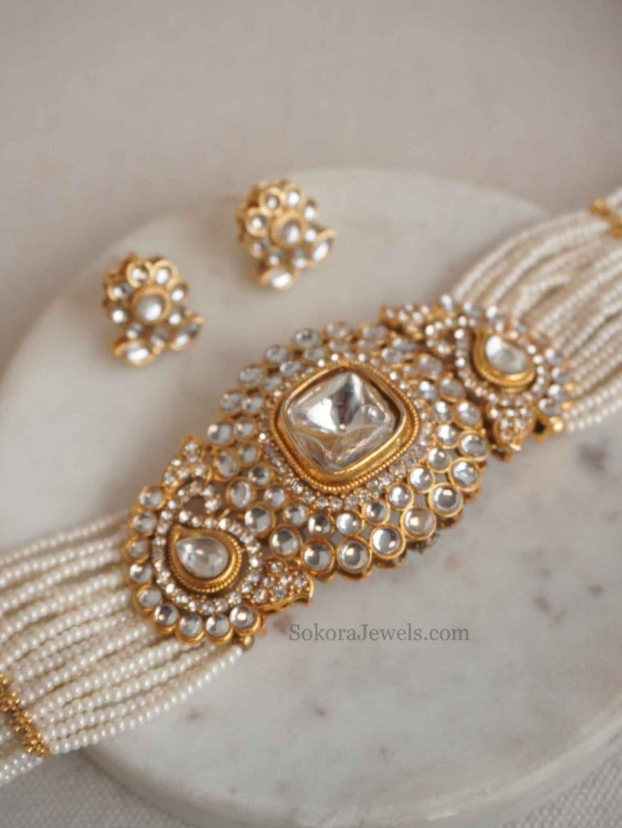 Kundan and Pearl Choker set - SOKORA JEWELSKundan and Pearl Choker setNECKLACE SETS