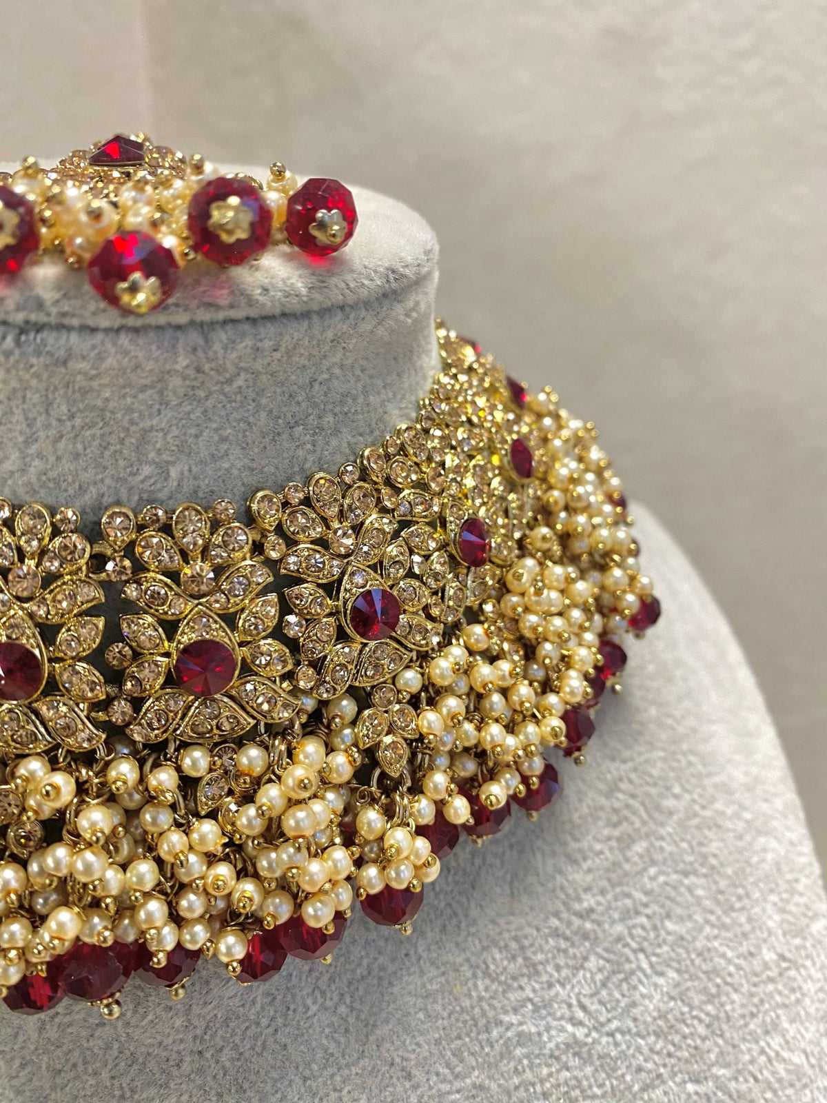 SLIGHTLY IMPERFECT: Maroon Necklace Set - SOKORA JEWELSSLIGHTLY IMPERFECT: Maroon Necklace Setcustom