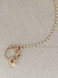 Left hand side 1 inch light gold nose ring with kundan gems, diamante and pearls.