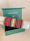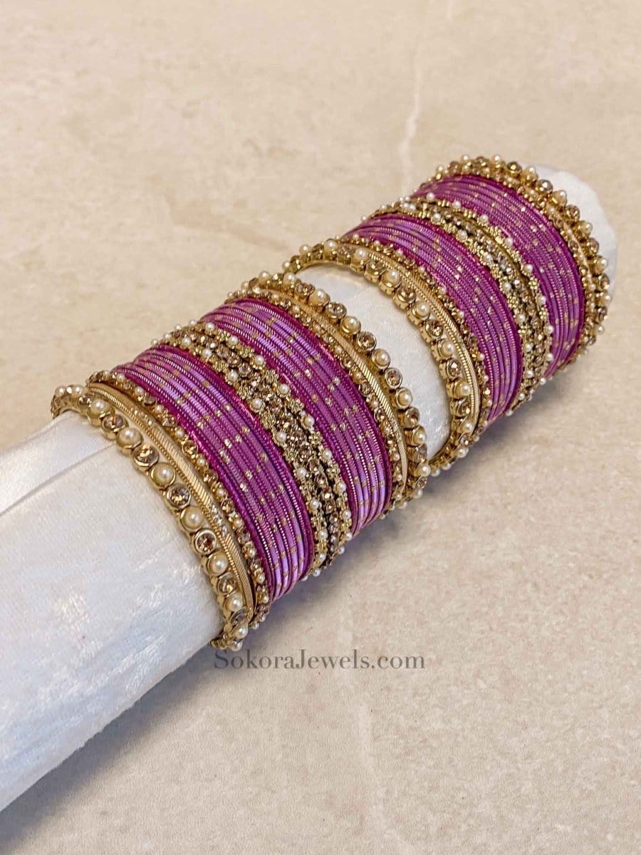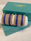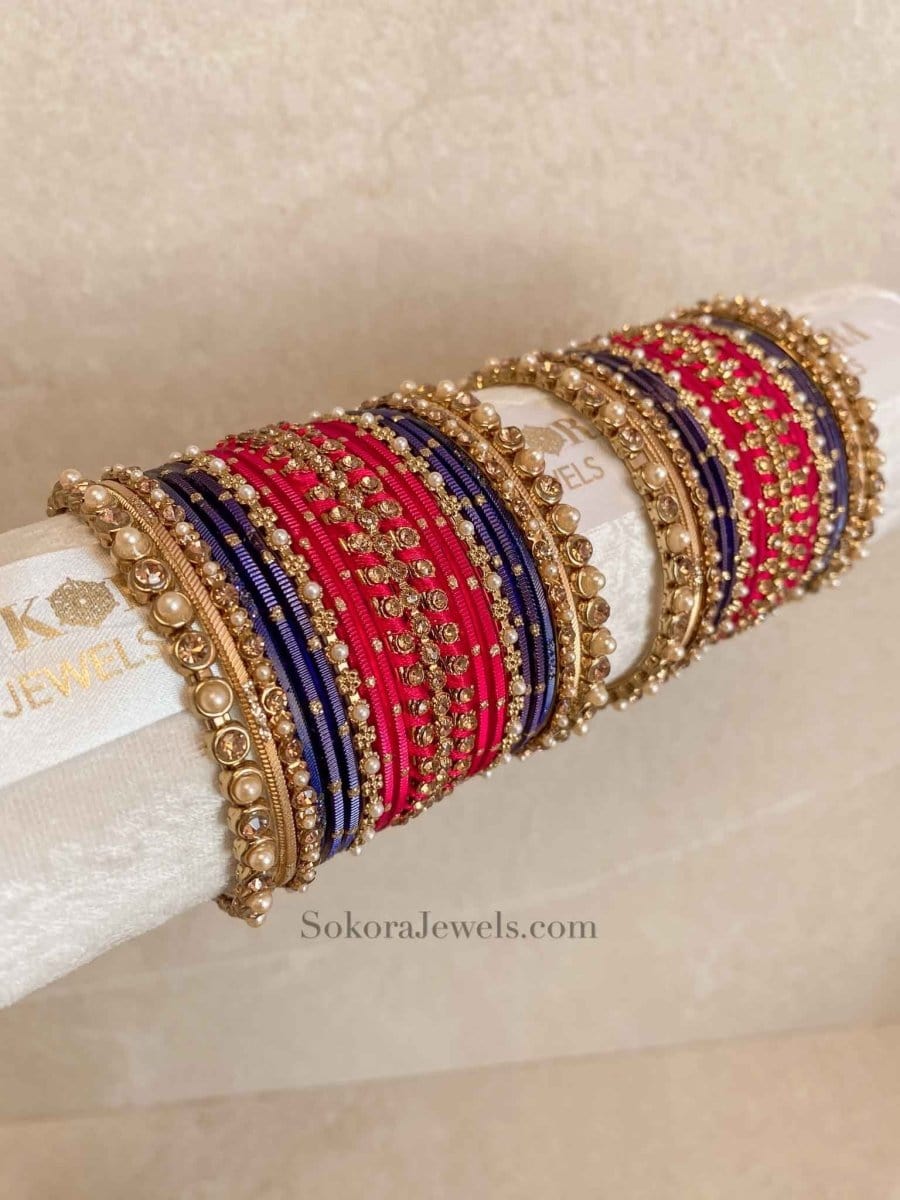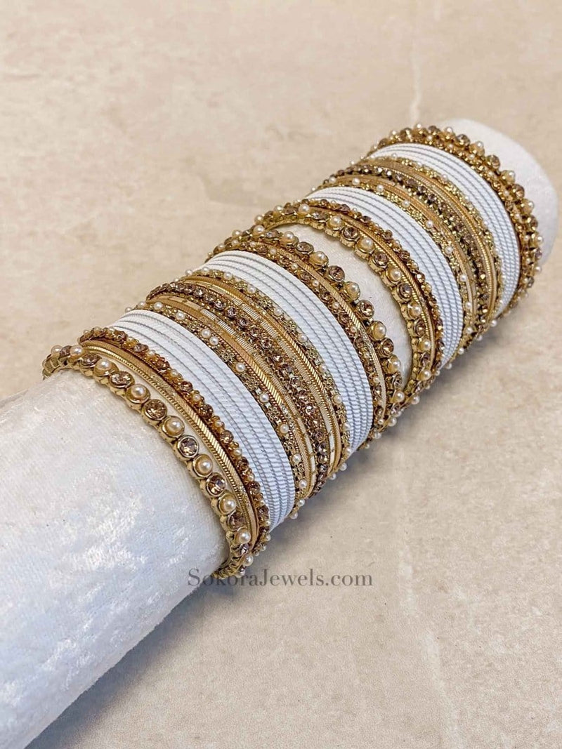 2 Medium stacks of Antique gold, pearl and stonework bangles with pops of colour.