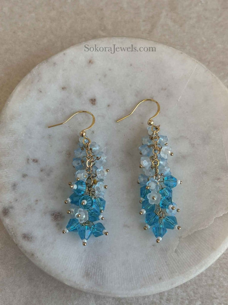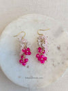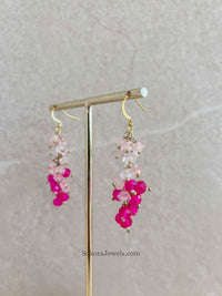 Delicate yet playful, our Blush Bloom Cluster Earrings feature an enchanting cascade of faceted beads in shades of soft blush pink and vibrant fuchsia. Each bead is individually wire-wrapped onto a gold-tone chain for beautiful movement and sparkle. Finished with petite flower accents and dainty gold detailing, these earrings bring a romantic flair to both everyday wear and special occasions. Lightweight and feminine, they’re perfect for spring celebrations, weddings, or adding a pop of colour to your look.