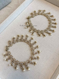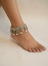 Luxury Champagne zircon stone detail anklets in antique gold with pearl beads