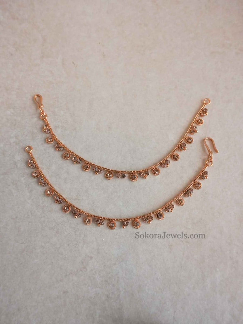 Bright gold ear chains with golden stones. Add these to any earrings and hook into hair to add extra drama!