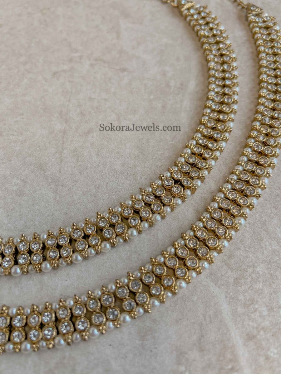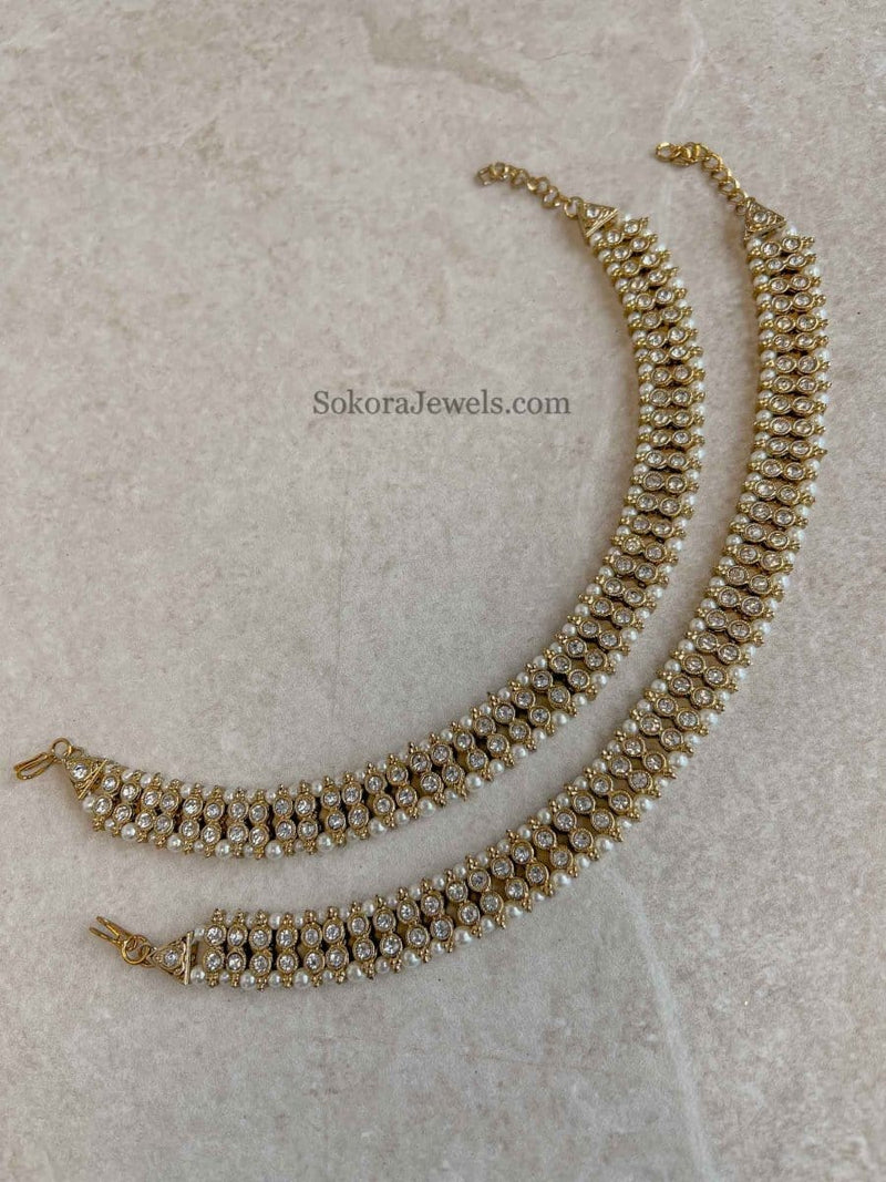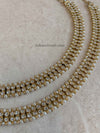 Handtied pearl and rhinestone detail anklets in antique gold.