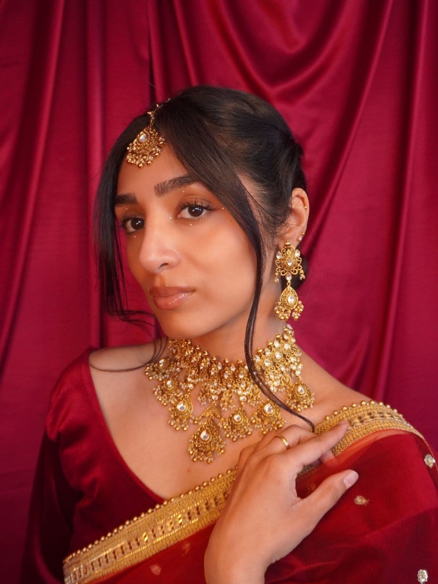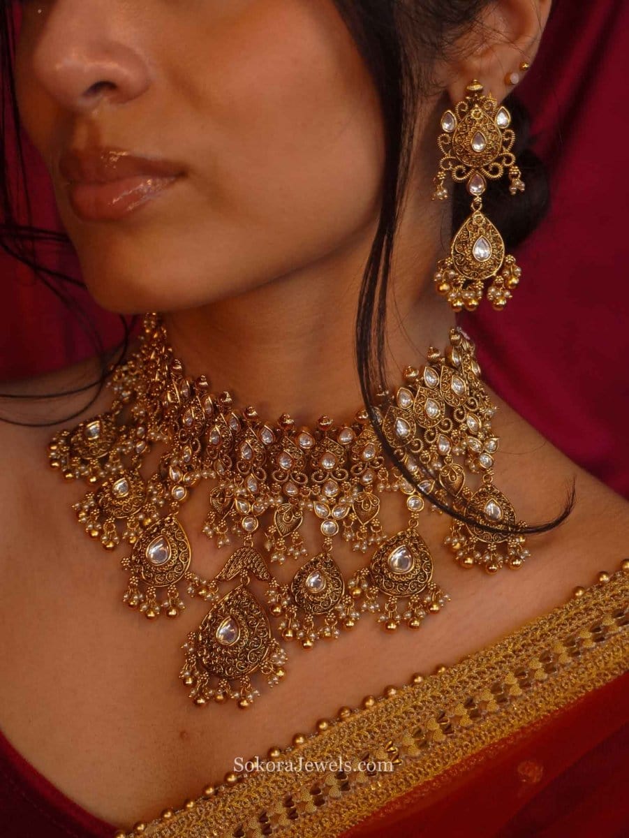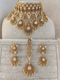 Eswari Large Gold Plated Kundan Bridal Necklace Set
