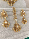 Luxury Kundan gem and 1 gram gold plated necklace set with pearls and gold ball beads. Perfect for Brides!