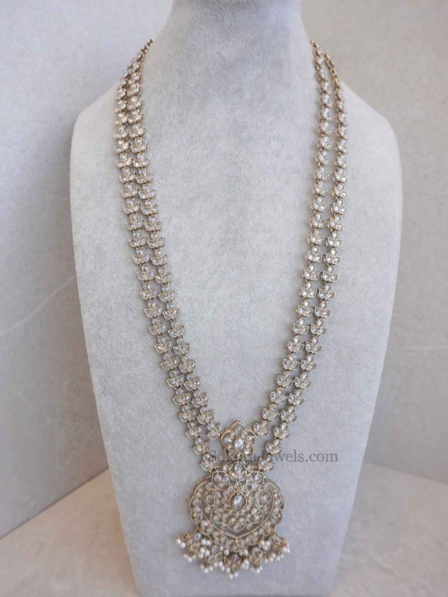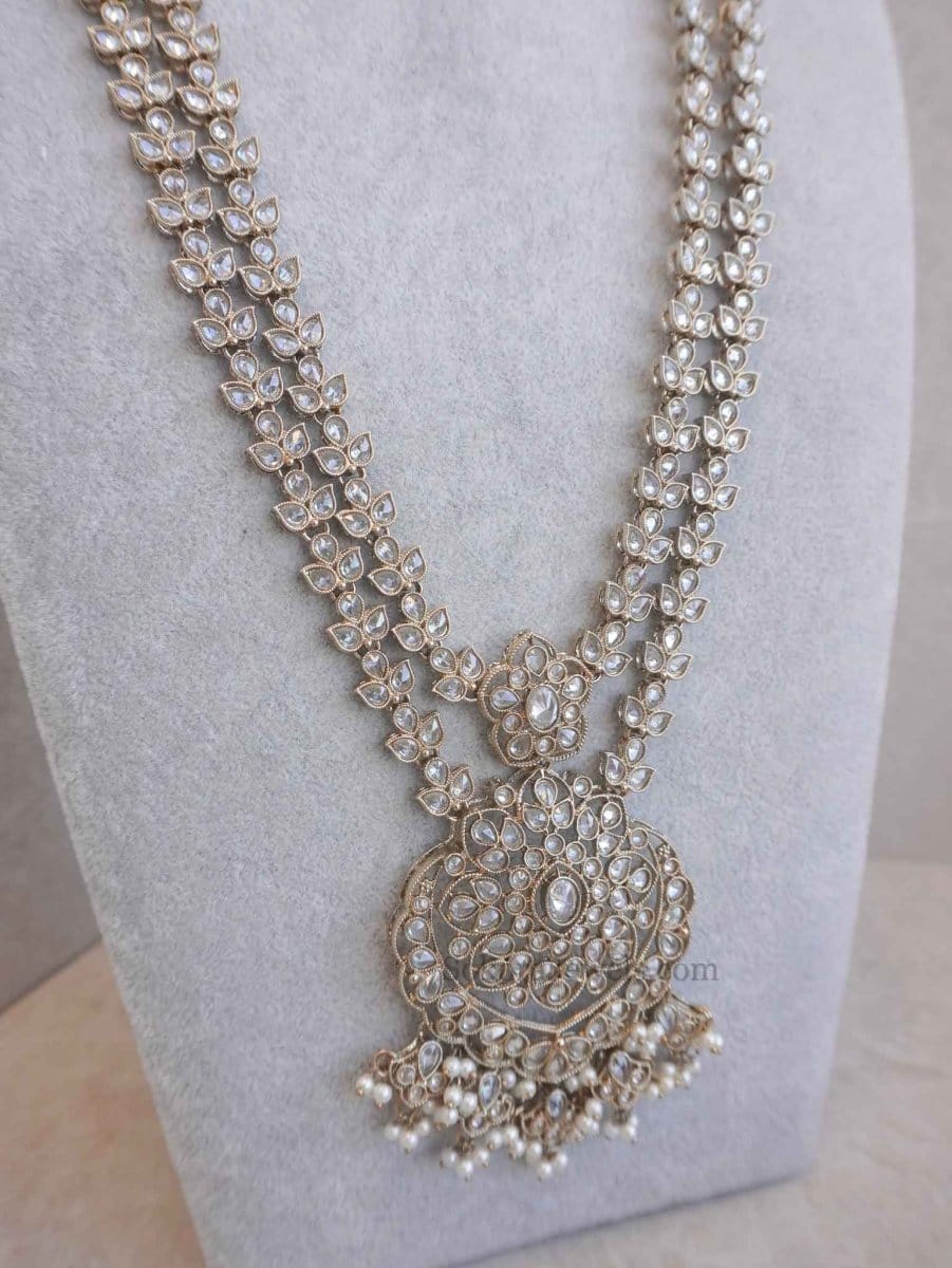 Antique gold Long Necklace with zircon crystals and colourful crystal beadwork. Matching items available. Search "Kavita" to view all matching items.
