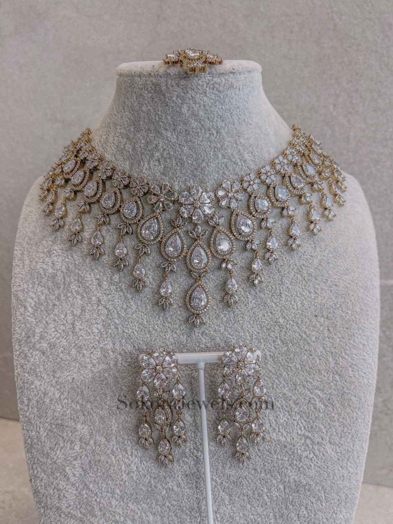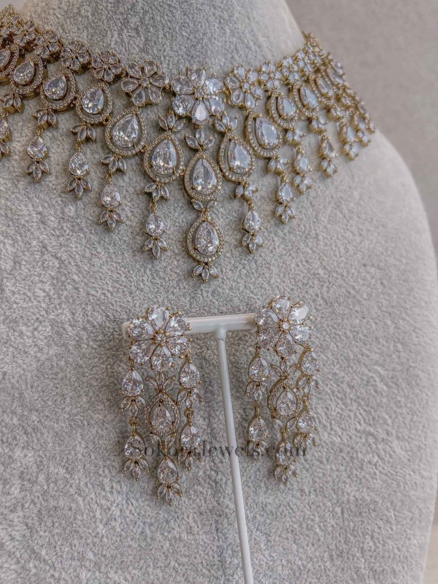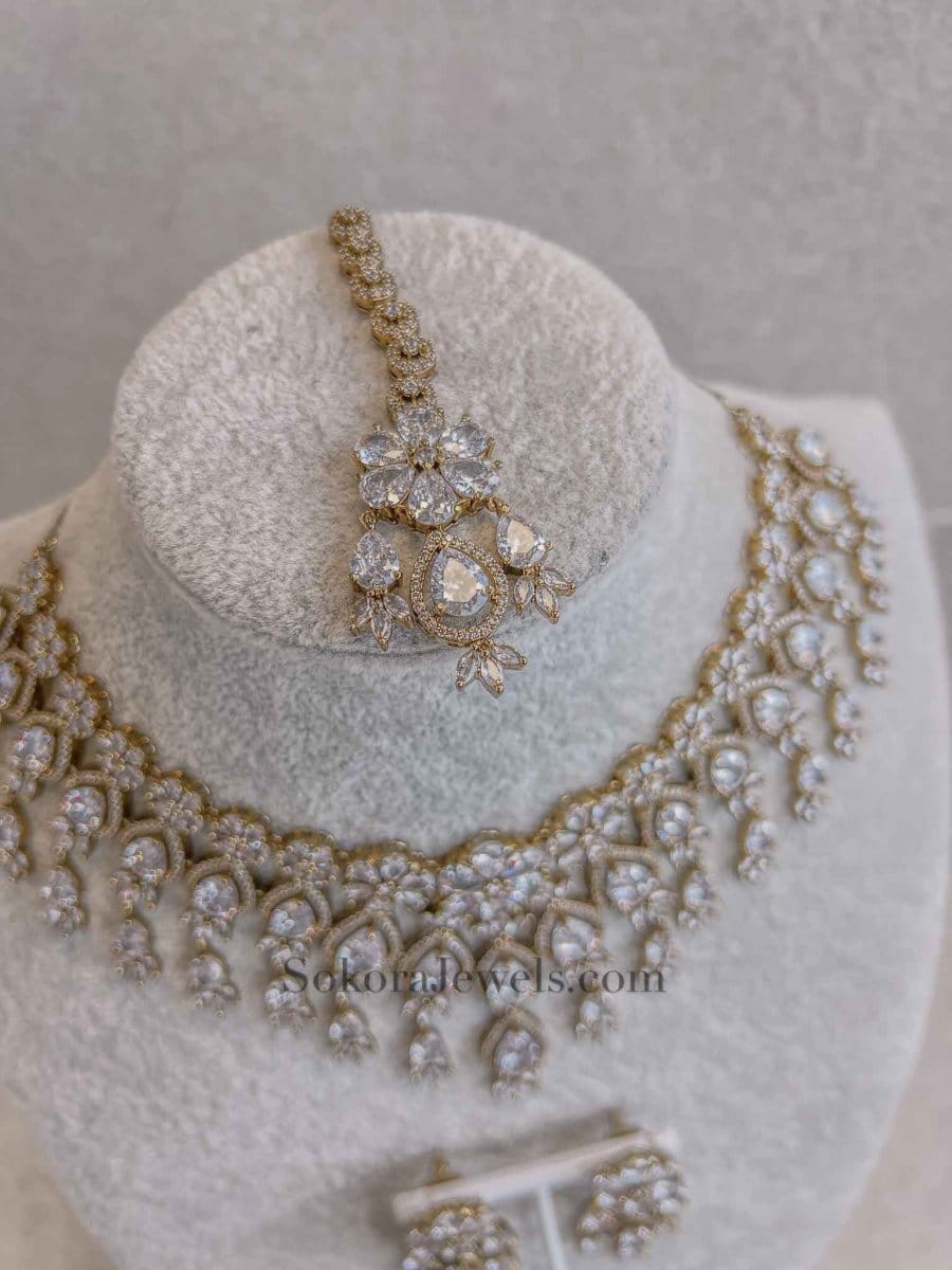 Large Clear Crystal set with American Diamonds on either a gold or silver base.