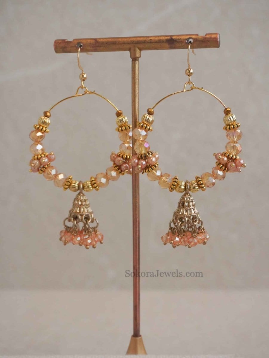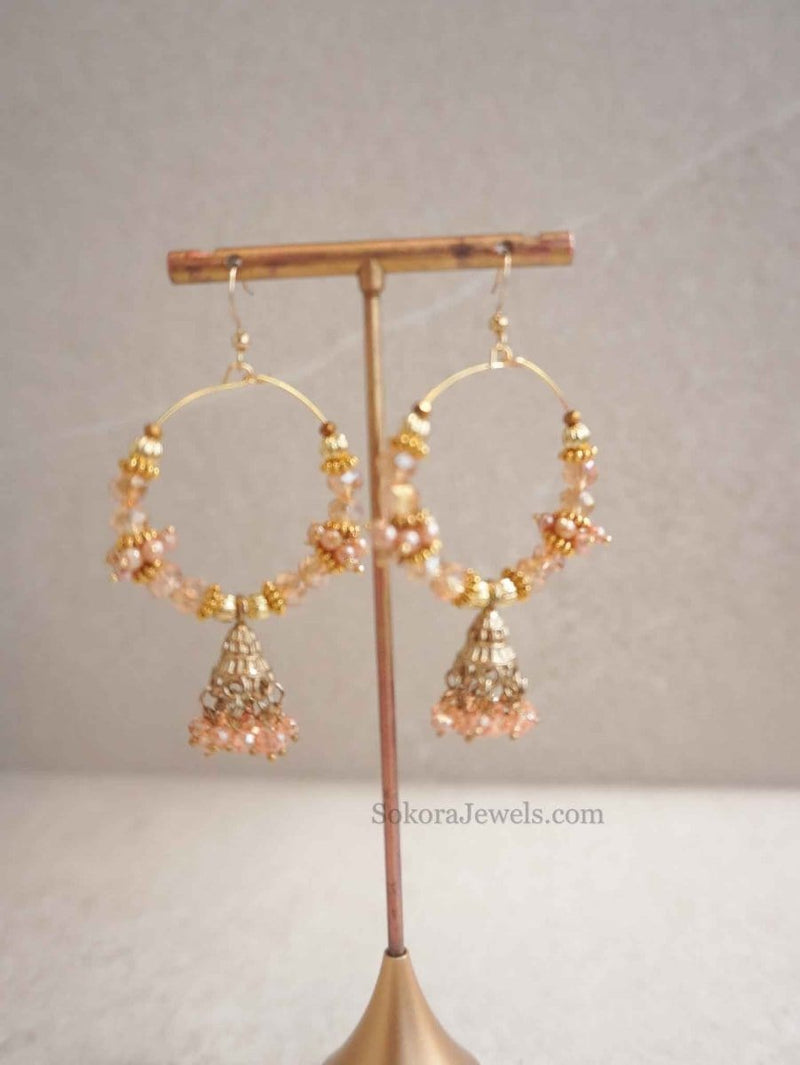 Antique Gold Hoop earrings with golden and champagne pearl beads.