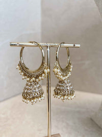 Golden crystal and pearl design medium antique gold Hoop earrings