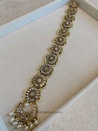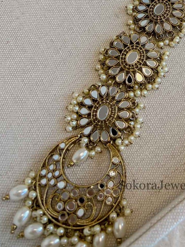 Mirror and pearl bead hair accessory for back of head and long plaits.