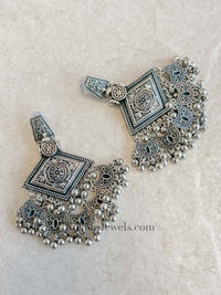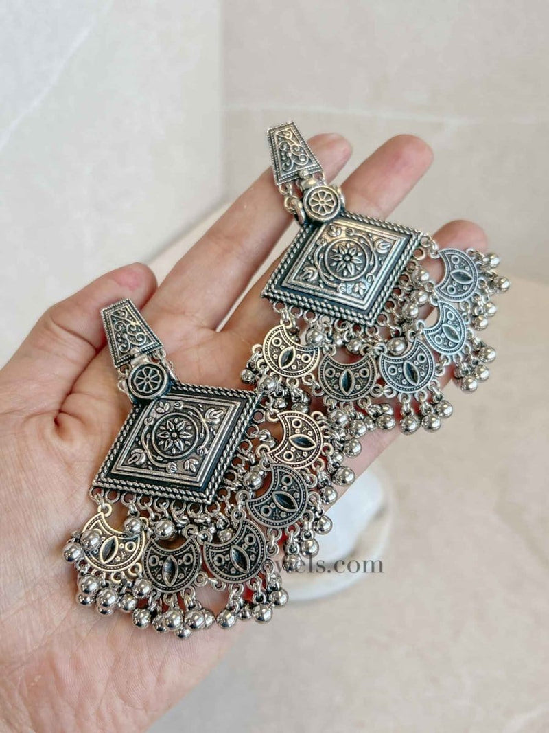 Oxidised silver large earrings. Perfect for Navratri celebrations