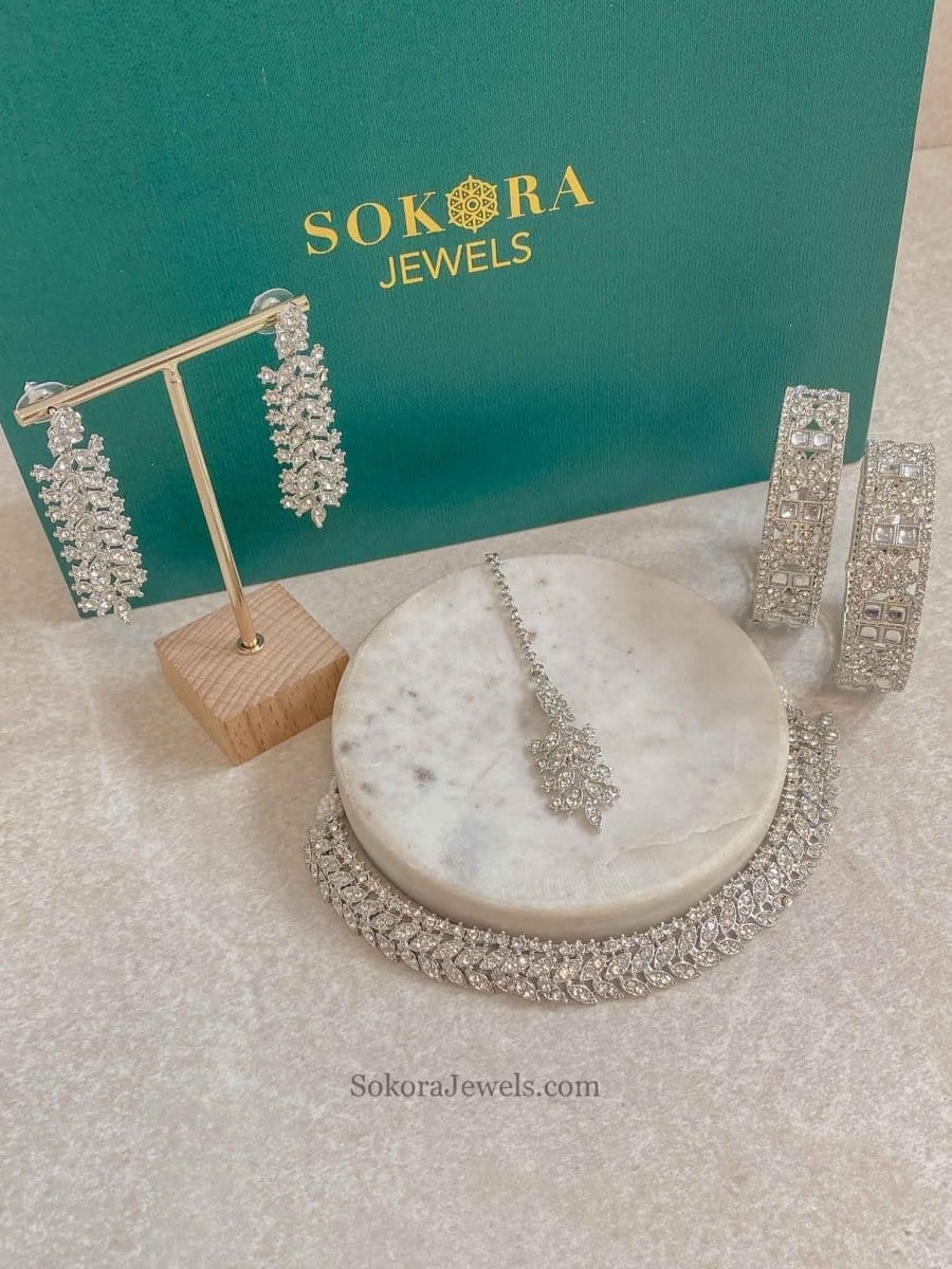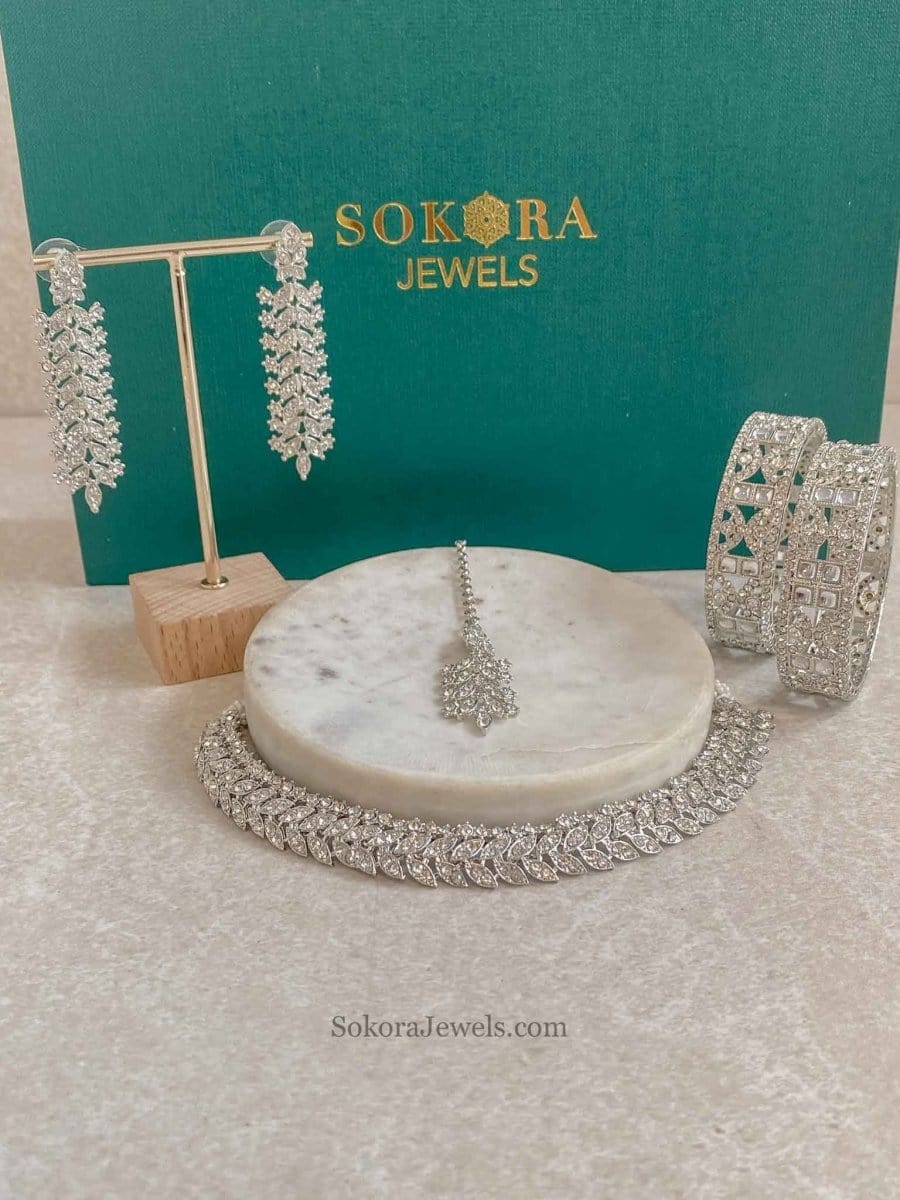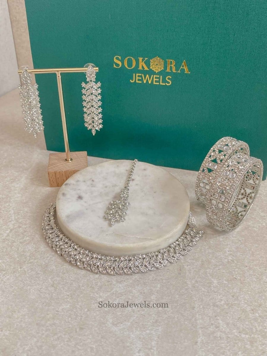 This beautifully presented jewellery set includes our Silver Marie necklace, earring & tikka set with beautiful matching Chunky Kada bangles.