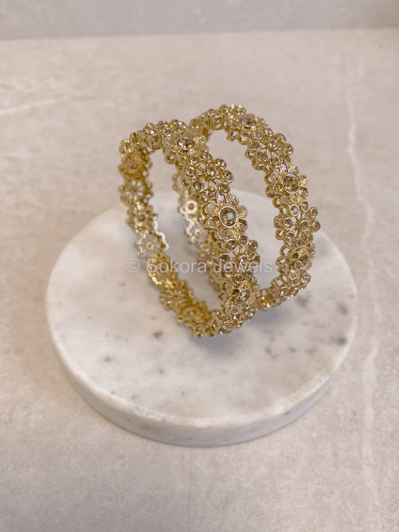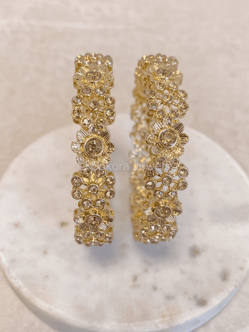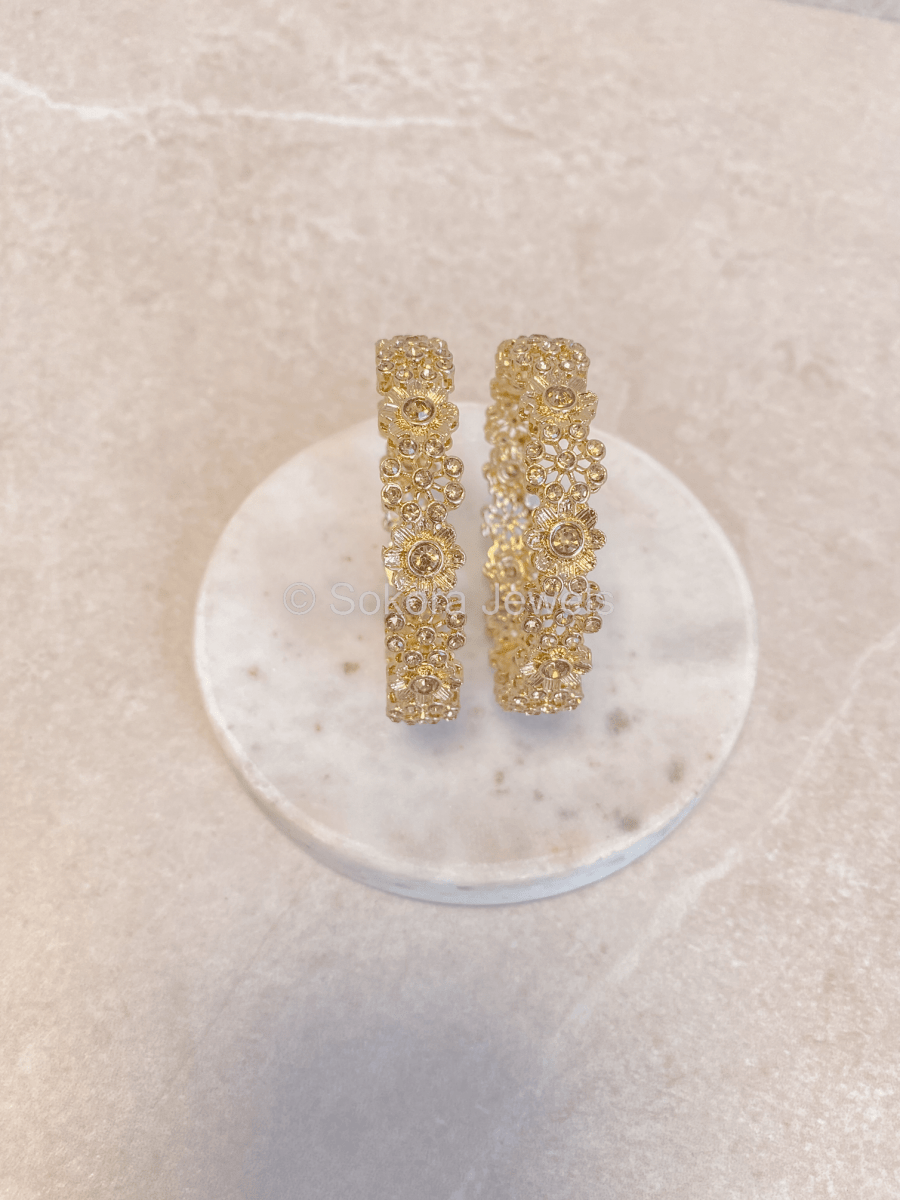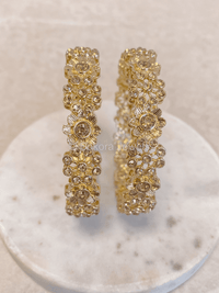 Pair of Antique Gold hand made bangles crafted sparkling golden stones.