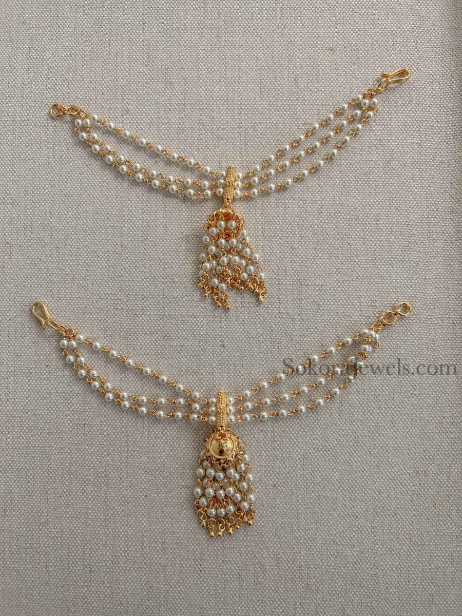 Bright Gold & Pearl Bead ear chains. Add these to any earrings to add extra drama!