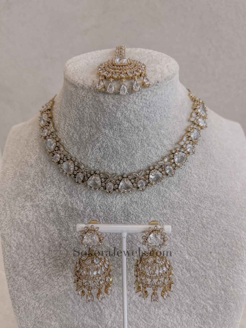 Small elegant Clear Crystal set with American Diamonds on either a silver or antique gold base.