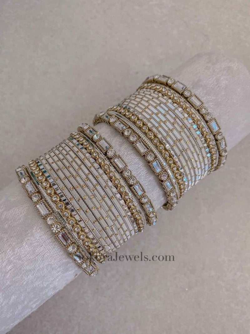 2 Small Stacks of Mirror & sparkly golden bangles.