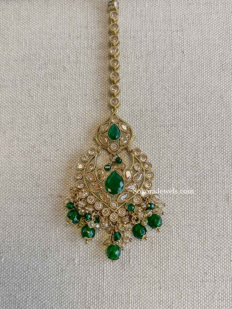 Large tikkas with colour beads and zircon crystals.