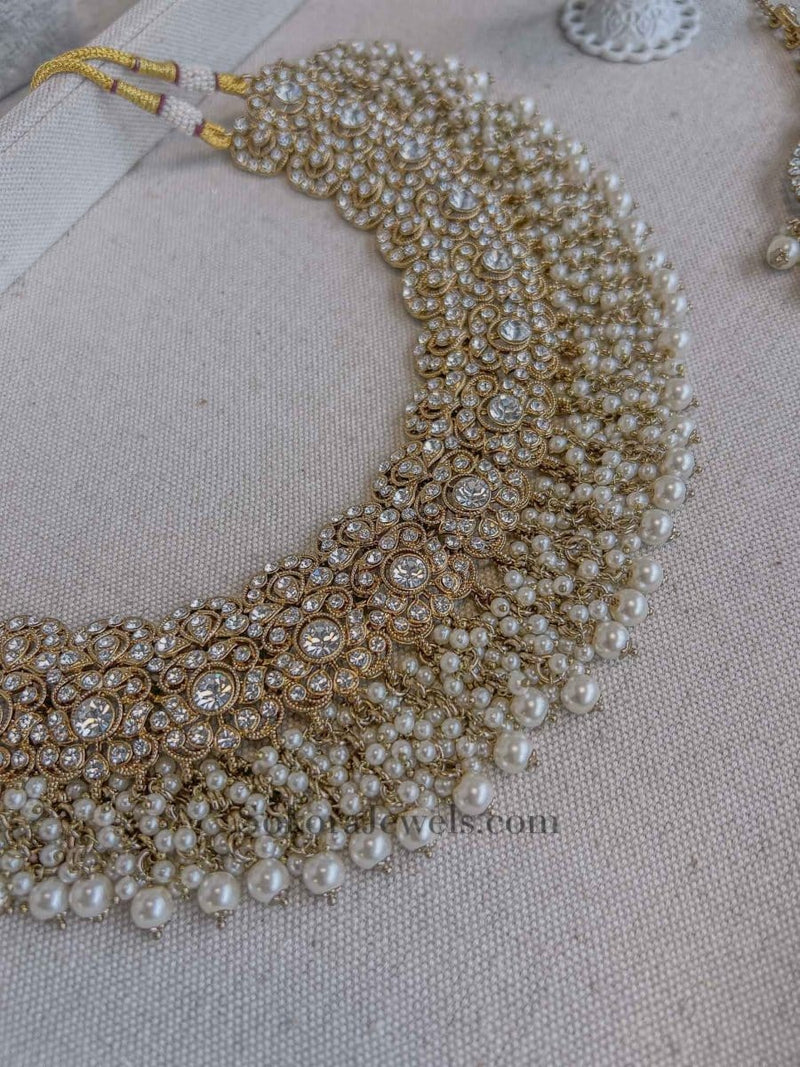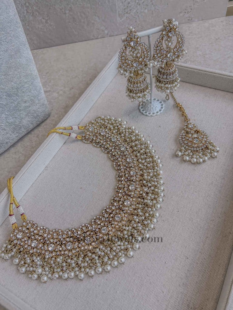Tehmeena Bridal Necklace and Earring Set - Pearl