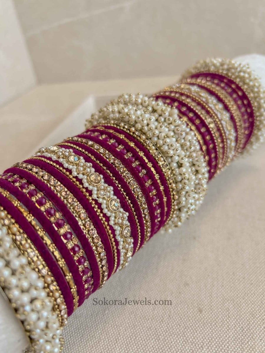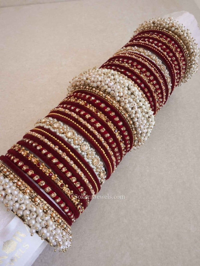 Thanjina Maroon Velvet Bangles Stack - 5 Colour Options